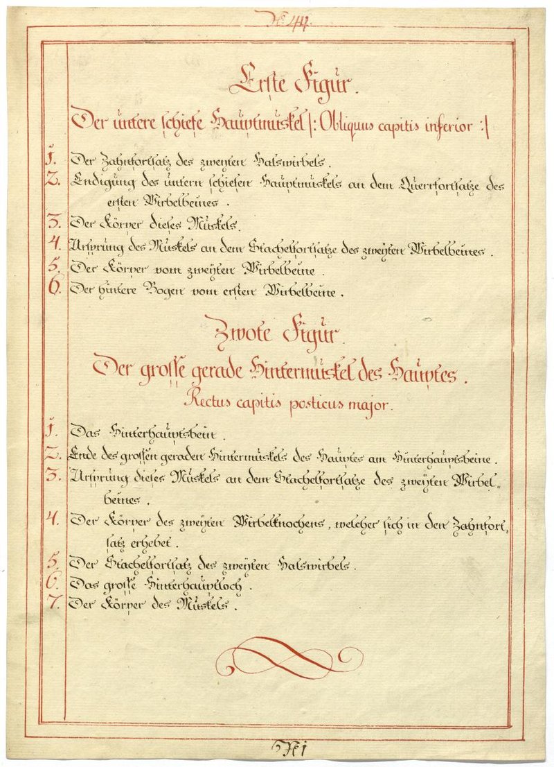Der Text ist die ergänzende Beschreibung in deutscher Sprache zum anatomischen Wachsmodell der kurzen Nackenmuskeln.