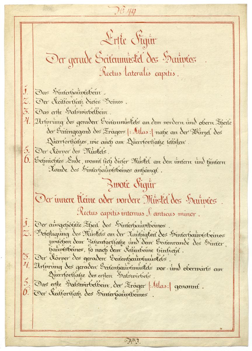 Der Text ist die ergänzende Beschreibung in deutscher Sprache zum anatomischen Wachsmodell der kurzen Nackenmuskeln.
