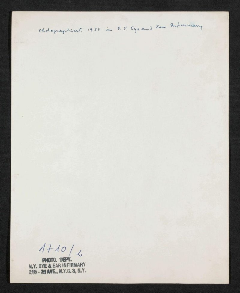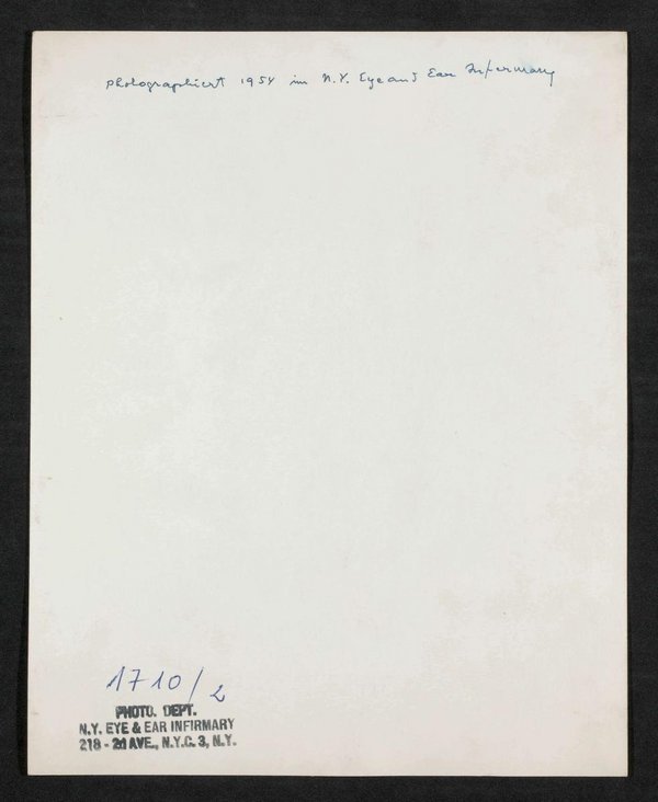 Die Fotografie stammt vom Photography Department, Eye and Ear Infirmary, am Mount Sinai Hospital, New York, 1954.