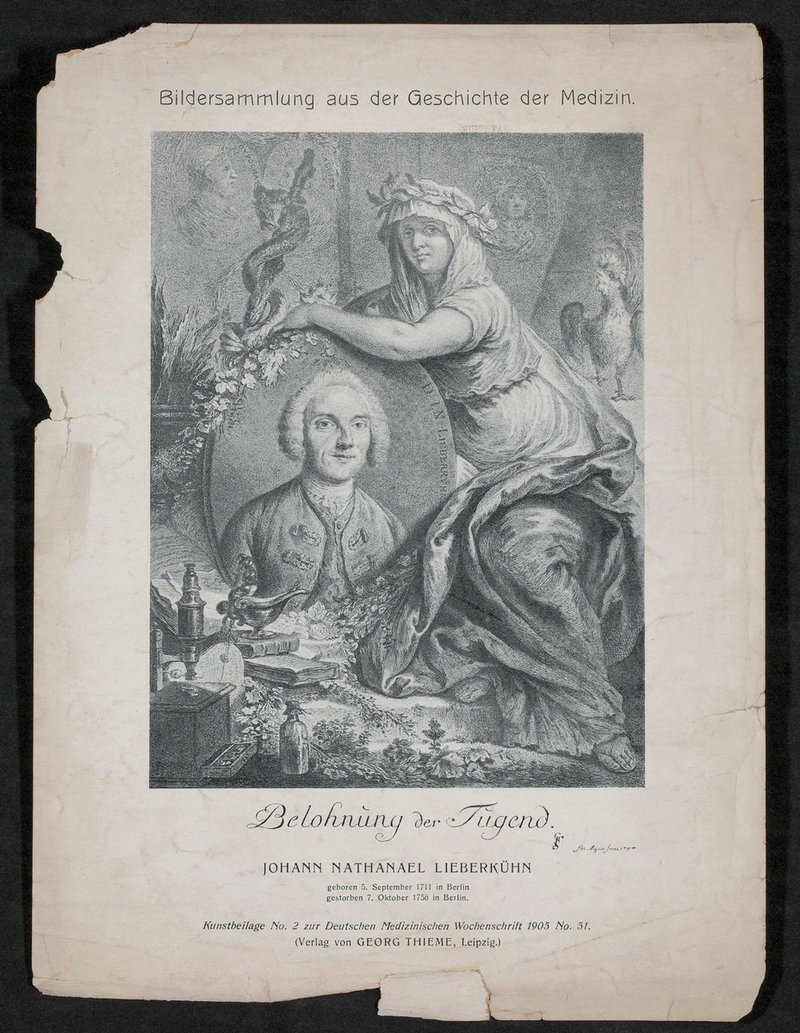 Auszug aus: Kunstbeilage Nr. 2 zur Deutschen Medizinischen Wochenschrift, Nr. 51, 1905. Als Verleger war Georg Thieme, Leipzig, tätig. Im Original handelt es sich um Radierung von Georg Friedrich Schmidt aus dem Jahr 1757.