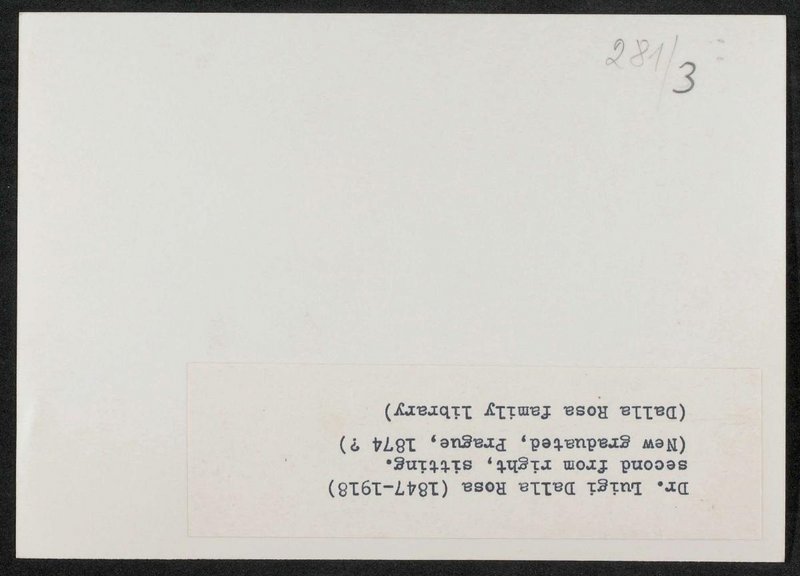 Die Fotografie wurde um 1874 in Prag angefertigt. Das Original befand sich zum Zeitpunkt der Entstehung der Kopie in Familienbesitz. Neg. III. 144/3