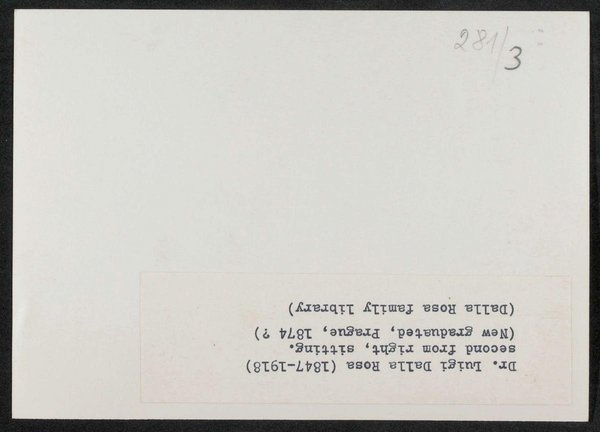 Die Fotografie wurde um 1874 in Prag angefertigt. Das Original befand sich zum Zeitpunkt der Entstehung der Kopie in Familienbesitz. Neg. III. 144/3