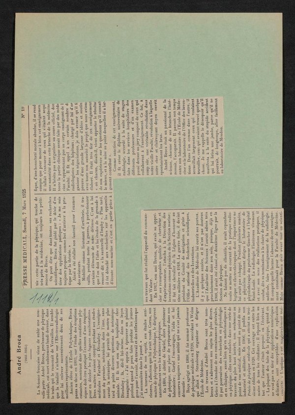 Bild und Nachruf stammen aus aus: La Presse Médicale, Nr. 19, 07.03.1925.