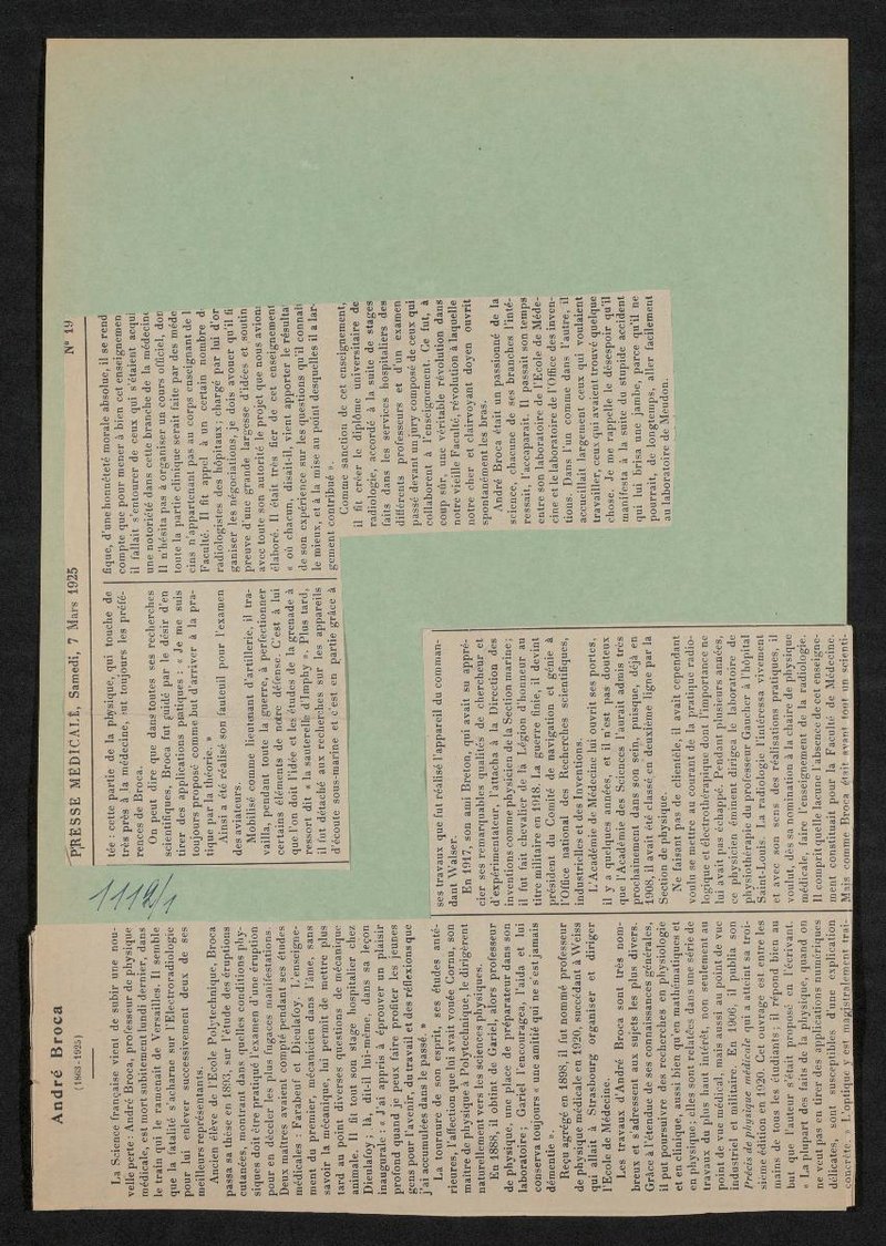 Bild und Nachruf stammen aus aus: La Presse Médicale, Nr. 19, 07.03.1925.