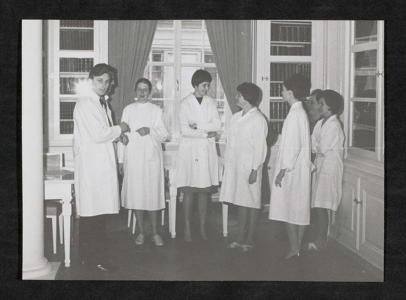 Abgebildet: Helmut Wyklicky, Fr. Lauber, Fr. Döhnt, Fr. Huber, Mrs. Adler, Fr. Leder.