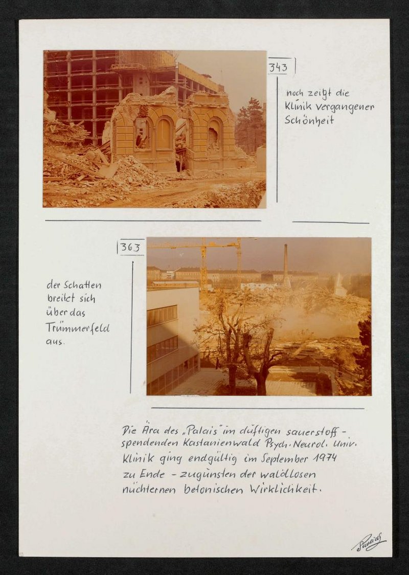 Ehemalige Klinik Wagner-Jauregg, beziehungsweise Niederösterreichische Landesirrenanstalt. Die Fotografien stammt von Photo Pavlicek.