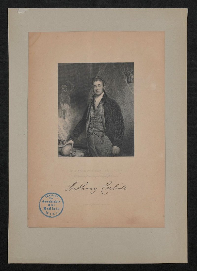 Die Lithografie von Henry Robinson angefertigt und von Fisher, Son and Co., London, gedruckt. Vorderseitig mit einem Stempel des Instituts für Geschichte der Medizin, Wien, versehen.