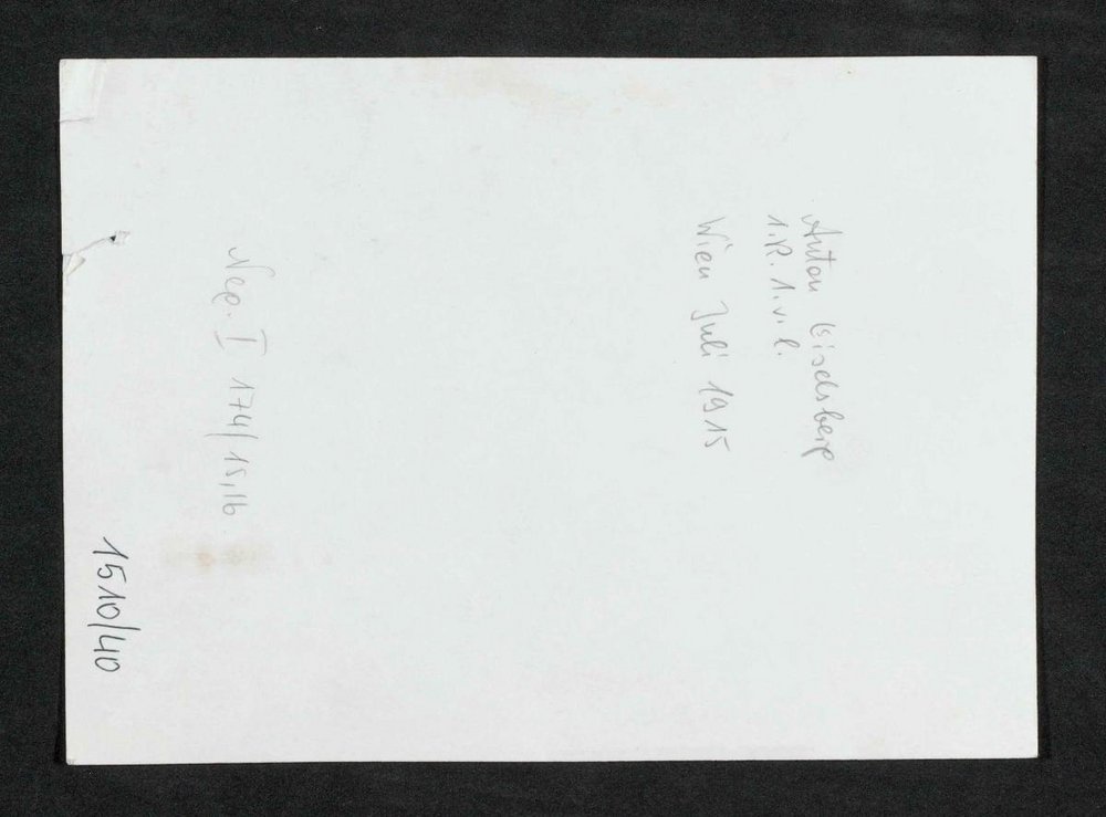 Die Vorlage wurde 1915 in Wien aufgenommen. Das Original befand sich zum Zeitpunkt, als die Kopie angefertigt wurde, im Besitz von Flora Eiselsberg. Neg. I. 174/15,16
