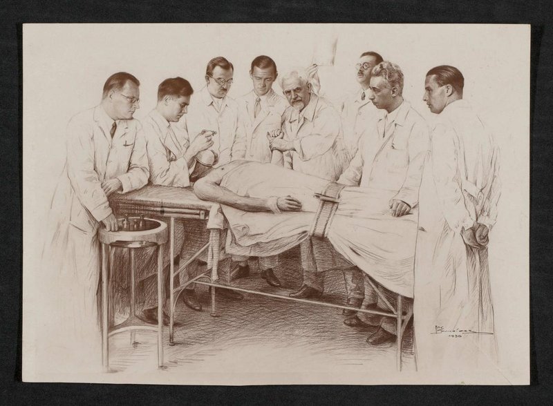 Vorlage war eine Zeichnung von Max Schneider. Diese wurde zum 70. Geburtstag von Anton Eiselsberg angefertigt.