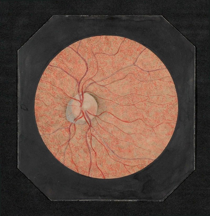 Es handelt sich um Originalaquarelle von Augenhintergrundbildern aus dem 3. Viertel des 19. Jahrhunderts, die in der I. Universitäts-Augenklinik Wien angefertigt worden sind. Der Bestand besteht aus 103 Aquarellen, die in einem Fotoalbum zusammengefasst waren.