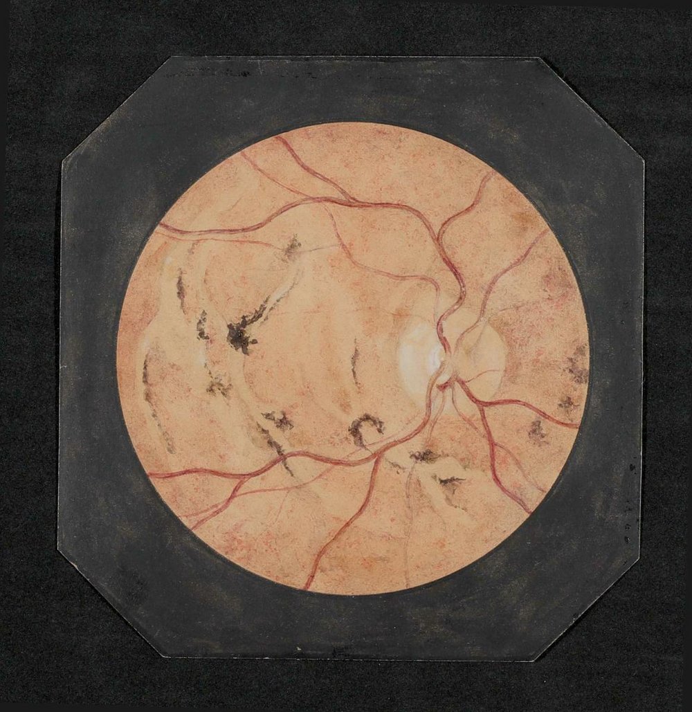 Es handelt sich um Originalaquarelle von Augenhintergrundbildern aus dem 3. Viertel des 19. Jahrhunderts, die in der I. Universitäts-Augenklinik Wien angefertigt worden sind. Der Bestand besteht aus 103 Aquarellen, die in einem Fotoalbum zusammengefasst waren.