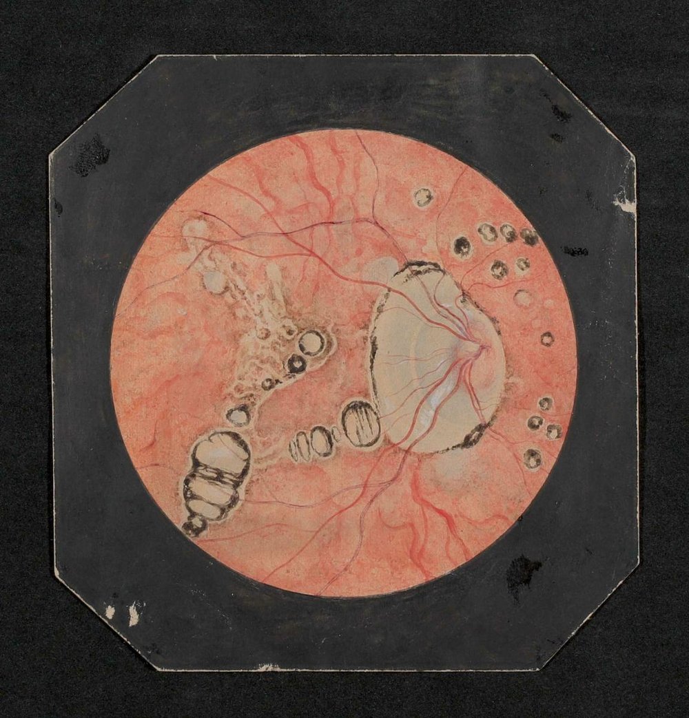Es handelt sich um Originalaquarelle von Augenhintergrundbildern aus dem 3. Viertel des 19. Jahrhunderts, die in der I. Universitäts-Augenklinik Wien angefertigt worden sind. Der Bestand besteht aus 103 Aquarellen, die in einem Fotoalbum zusammengefasst waren.