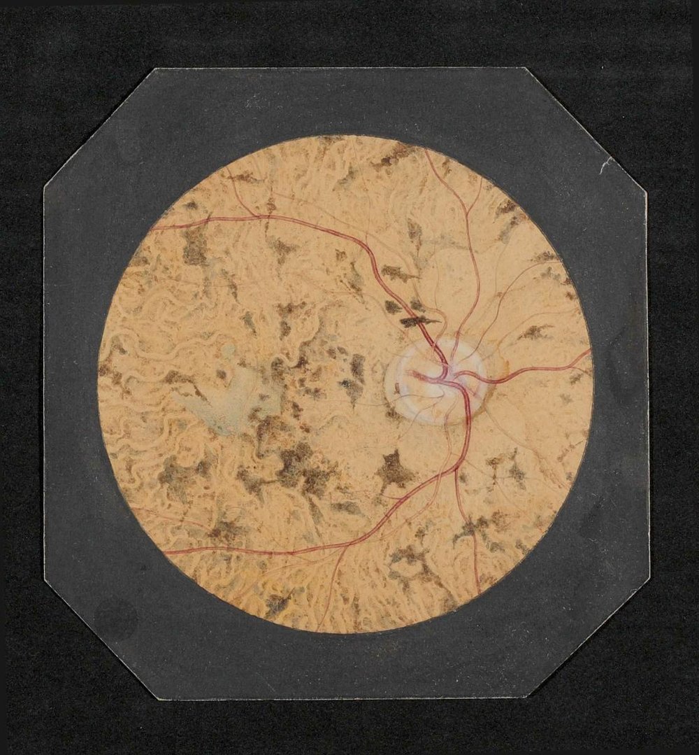 Es handelt sich um Originalaquarelle von Augenhintergrundbildern aus dem 3. Viertel des 19. Jahrhunderts, die in der I. Universitäts-Augenklinik Wien angefertigt worden sind. Der Bestand besteht aus 103 Aquarellen, die in einem Fotoalbum zusammengefasst waren.
