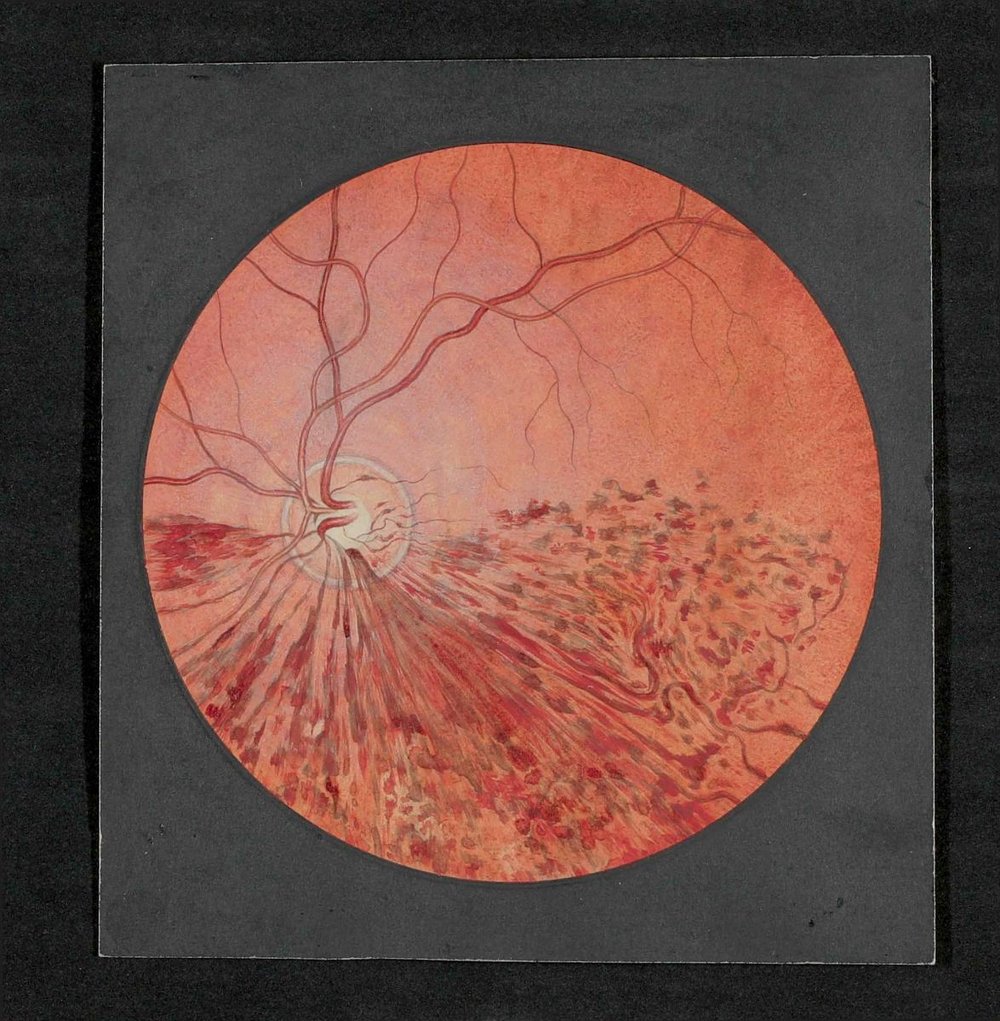Es handelt sich um Originalaquarelle von Augenhintergrundbildern aus dem 3. Viertel des 19. Jahrhunderts, die in der I. Universitäts-Augenklinik Wien angefertigt worden sind. Der Bestand besteht aus 103 Aquarellen, die in einem Fotoalbum zusammengefasst waren.