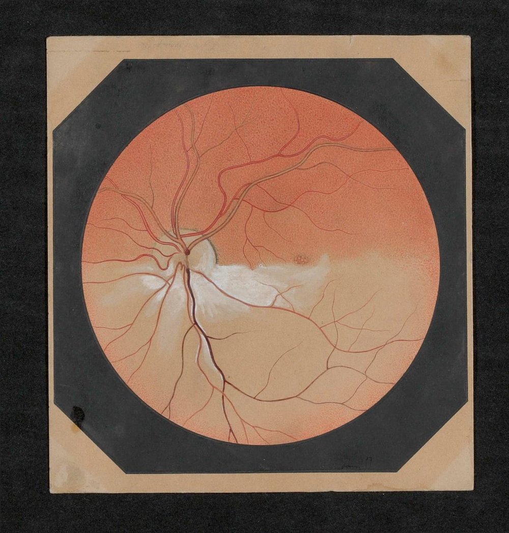 Es handelt sich um Originalaquarelle von Augenhintergrundbildern aus dem 3. Viertel des 19. Jahrhunderts, die in der I. Universitäts-Augenklinik Wien angefertigt worden sind. Der Bestand besteht aus 103 Aquarellen, die in einem Fotoalbum zusammengefasst waren.