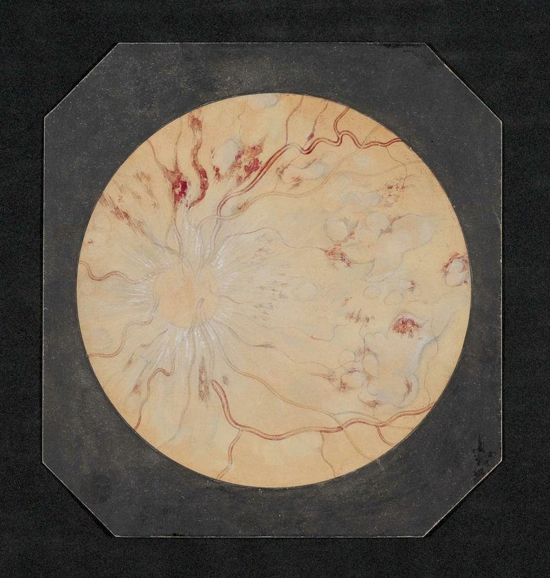 Es handelt sich um Originalaquarelle von Augenhintergrundbildern aus dem 3. Viertel des 19. Jahrhunderts, die in der I. Universitäts-Augenklinik Wien angefertigt worden sind. Der Bestand besteht aus 103 Aquarellen, die in einem Fotoalbum zusammengefasst waren.