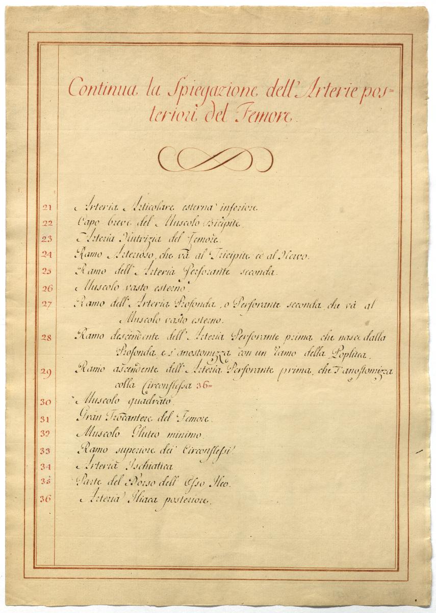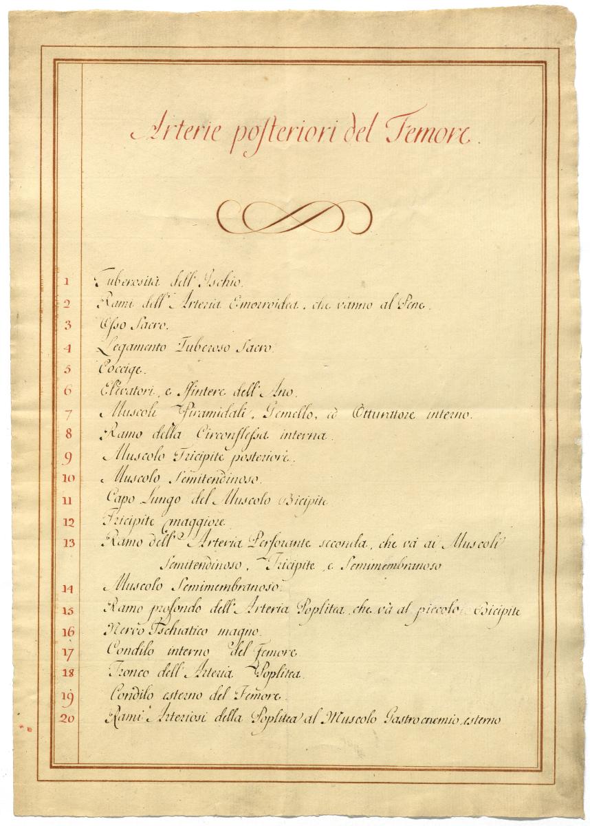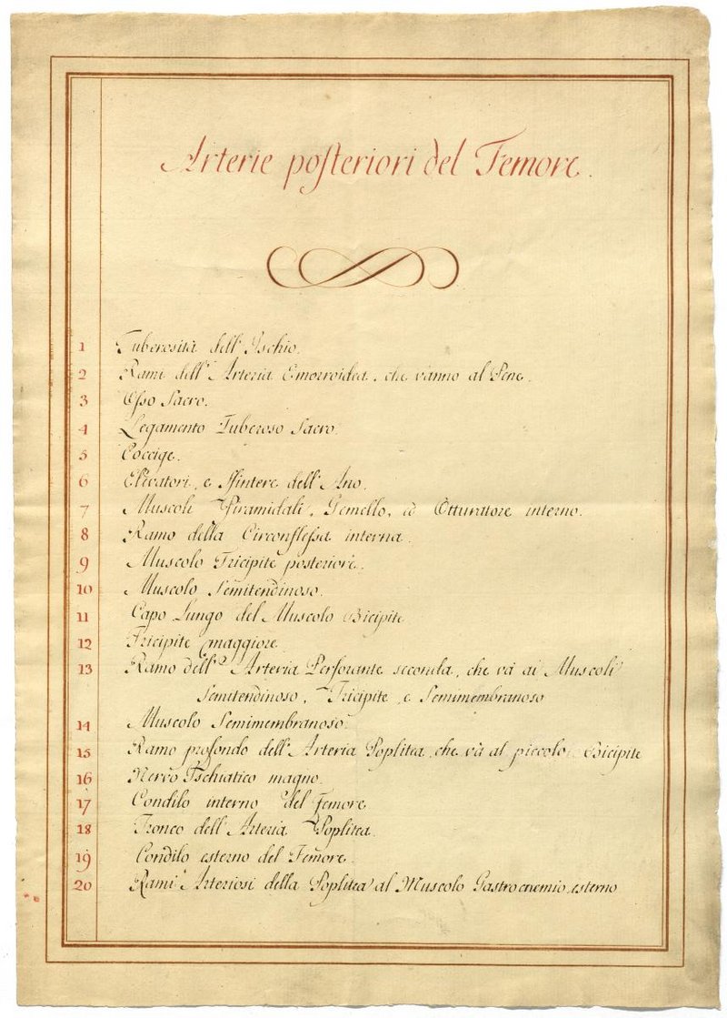 Der Text ist die ergänzende Beschreibung in italienischer Sprache zum anatomischen Wachsmodell der Nervus ischiadicus.