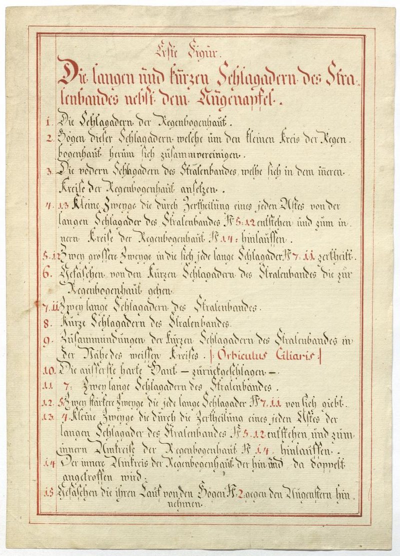Der Text ist die ergänzende Beschreibung in deutscher Sprache zum anatomischen Wachsmodell des Augapfels.
