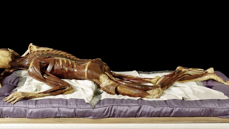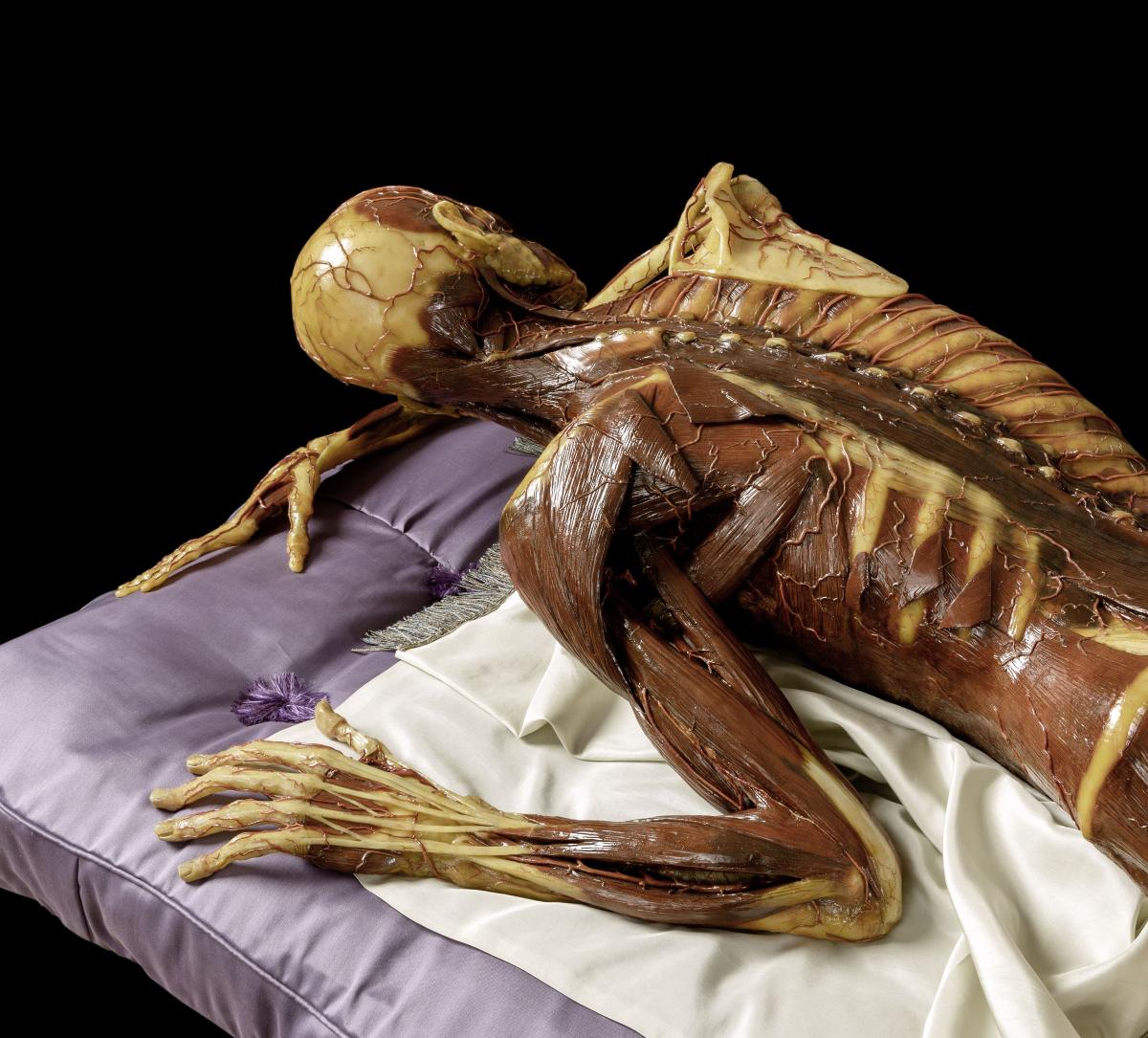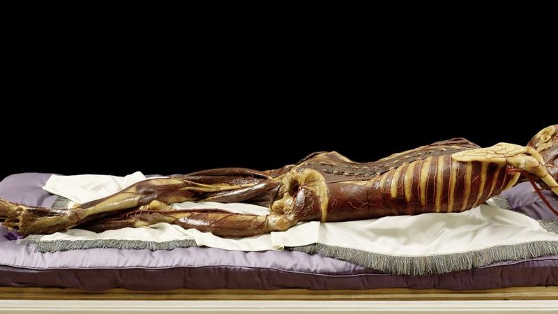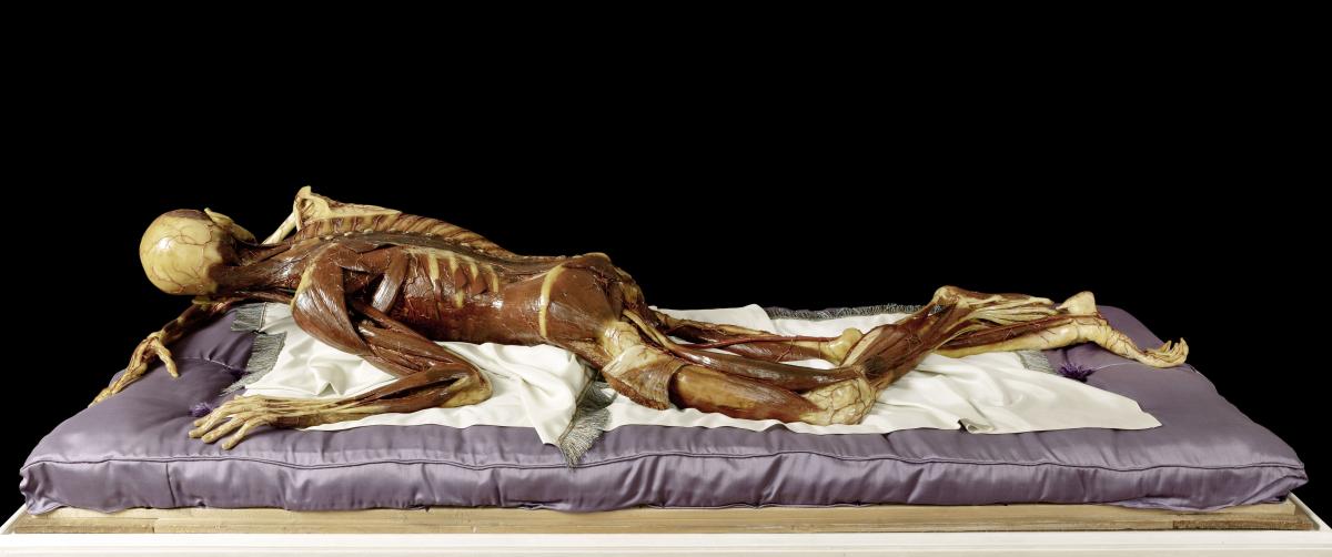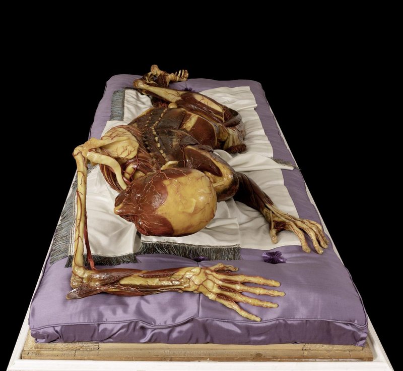 Objektmaß 46 x 71 x 181 cm Liegendes Wachsmodell - Vitrine im verschlossenen Zustand, ohne Tisch