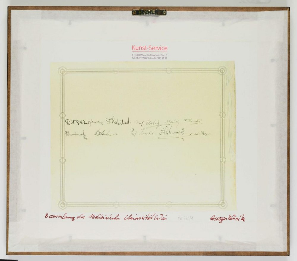 Die Fotografie wurde aus der Kassette entfernt und gerahmt. Nicht alle Namen konnten transkribiert werden. Digitalisate des Albums: Reiner Riedler.