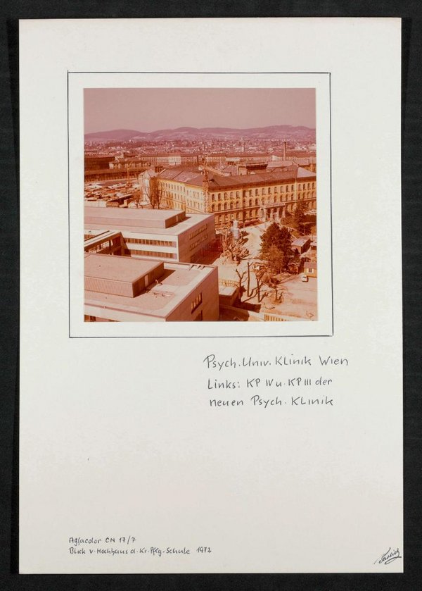 Ehemalige Klinik Wagner-Jauregg, beziehungsweise Niederösterreichische Landesirrenanstalt. Die Fotografien stammt von Photo Pavlicek.
