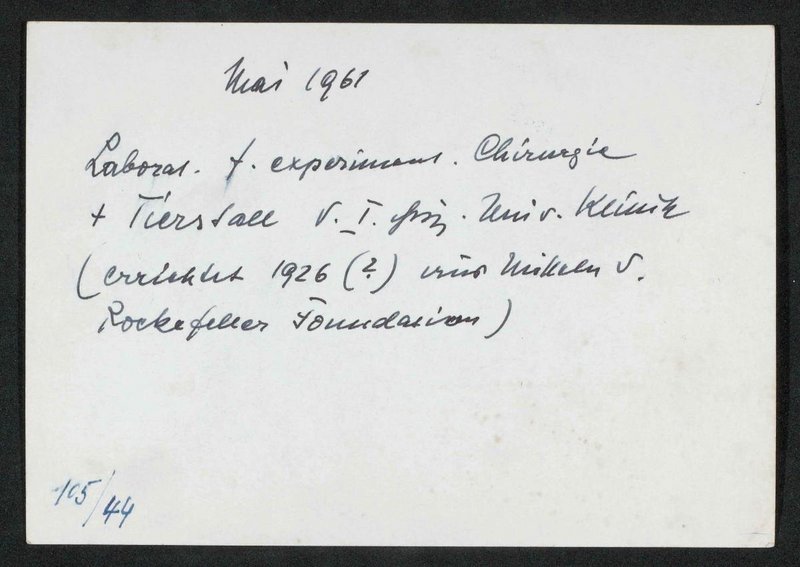 Auf der Bildrückseite ist die Vermutung notiert, dass das Gebäude 1926 aus Mitteln der Rockefeller Foundation errichtet worden ist.