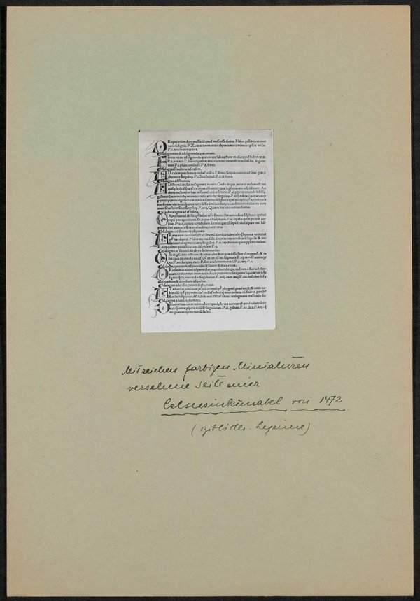 Vorlage war eine Inkunabel aus der Bibliothek von Friedrich Lejeune. Die Fotografie wurde sehr wahrscheinlich im Josephinum angefertigt.