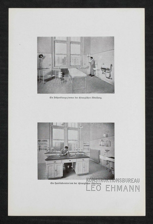 Die Fotografien wurden von Martin Peter Gerlach senior angefertigt. Das Konstruktionsbüro Leo Ehmann hat die gesamte medizinische Einrichtung des Spitals geplant und hergestellt.