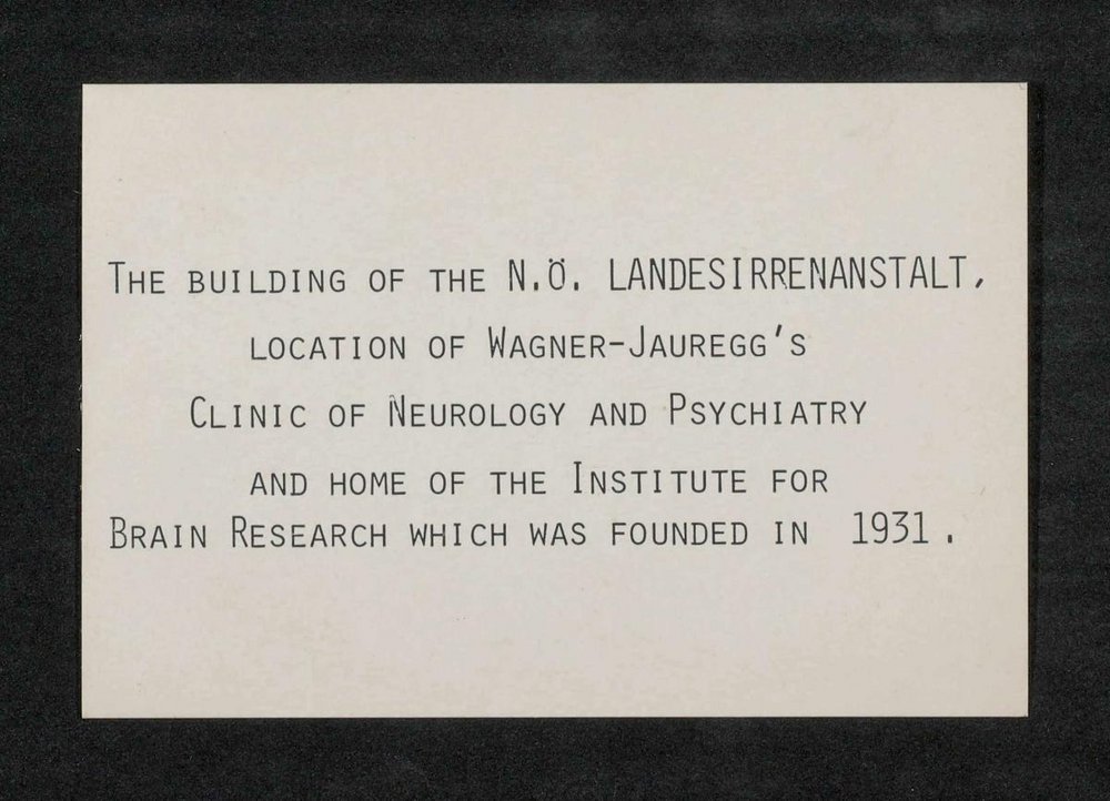 Ehemalige Klinik Wagner-Jauregg, beziehungsweise Niederösterreichische Landesirrenanstalt. Die Fotografien stammt von Photo Pavlicek.