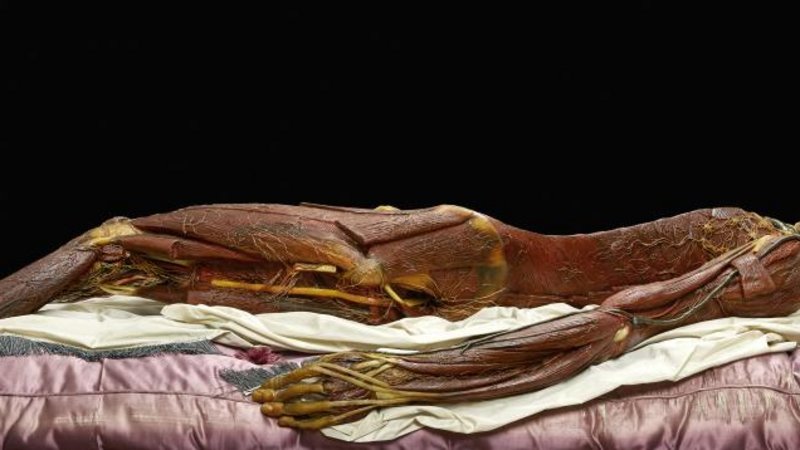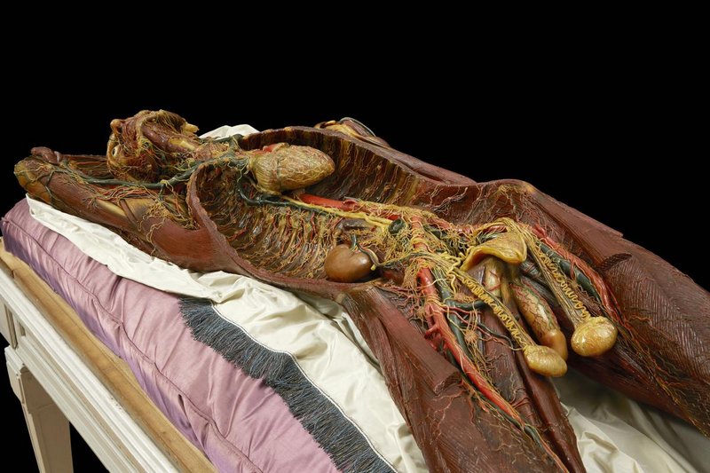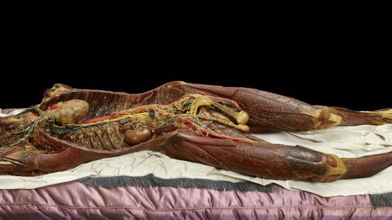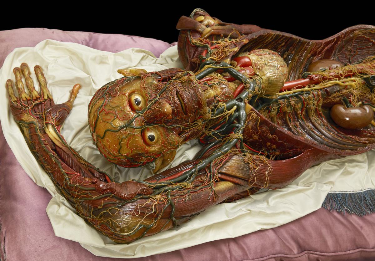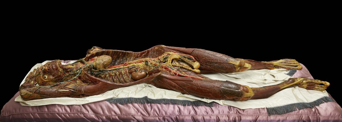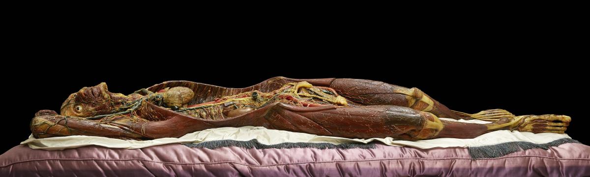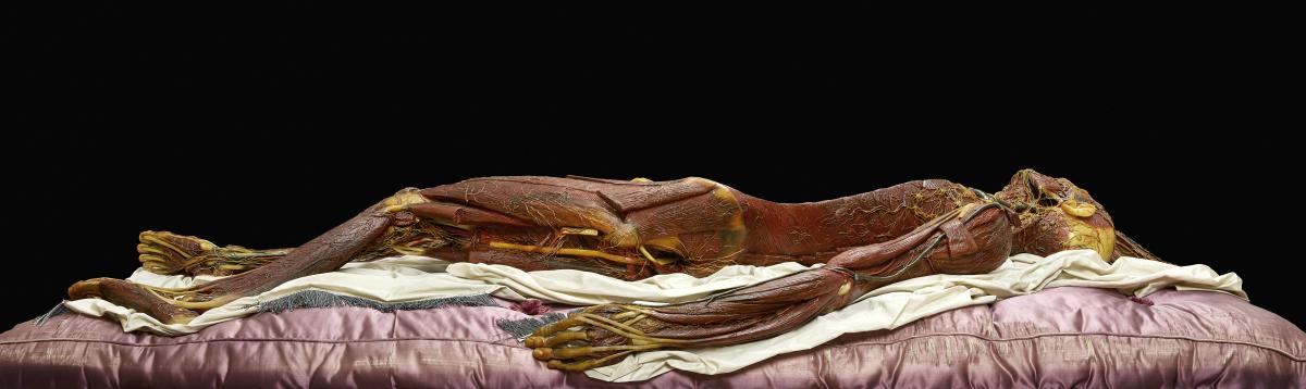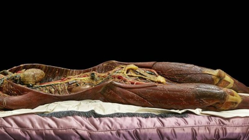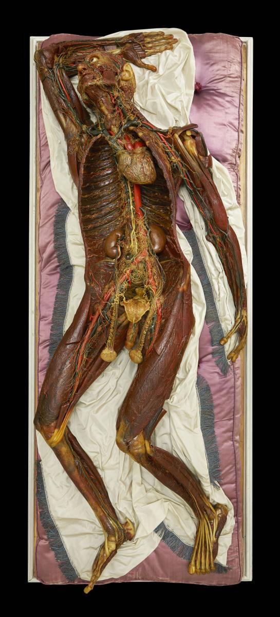 Objektmaß 46 x 72 x 181 cm Liegendes Wachsmodell - Vitrine im verschlossenen Zustand, ohne Tisch