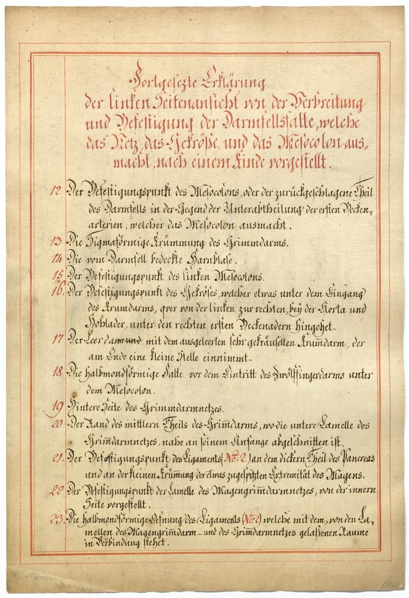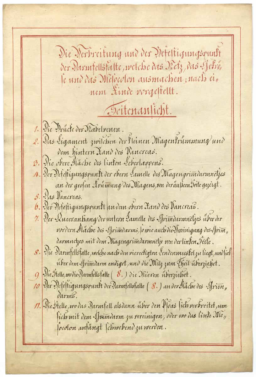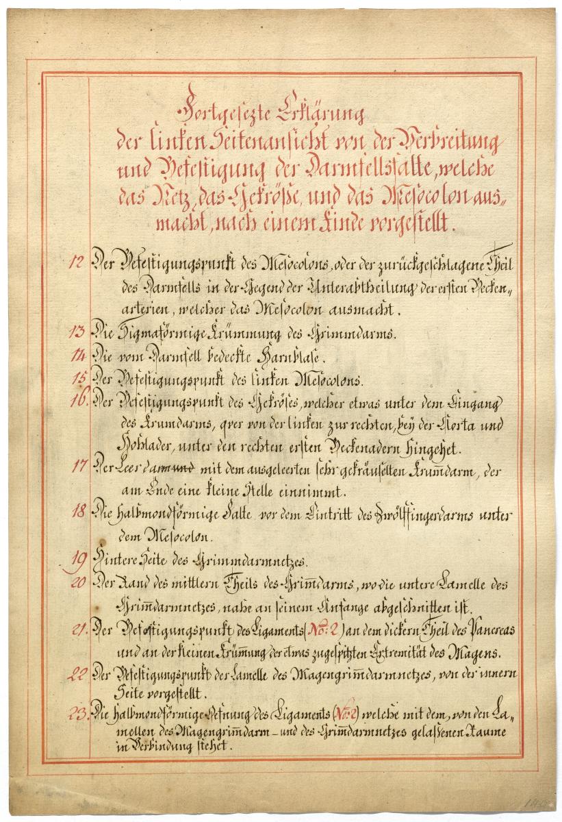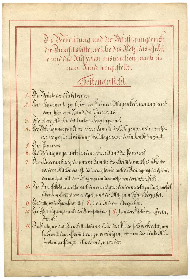 Der Text ist die ergänzende Beschreibung in deutscher Sprache zum anatomischen Wachsmodell der Gefäße des Bauchraums.