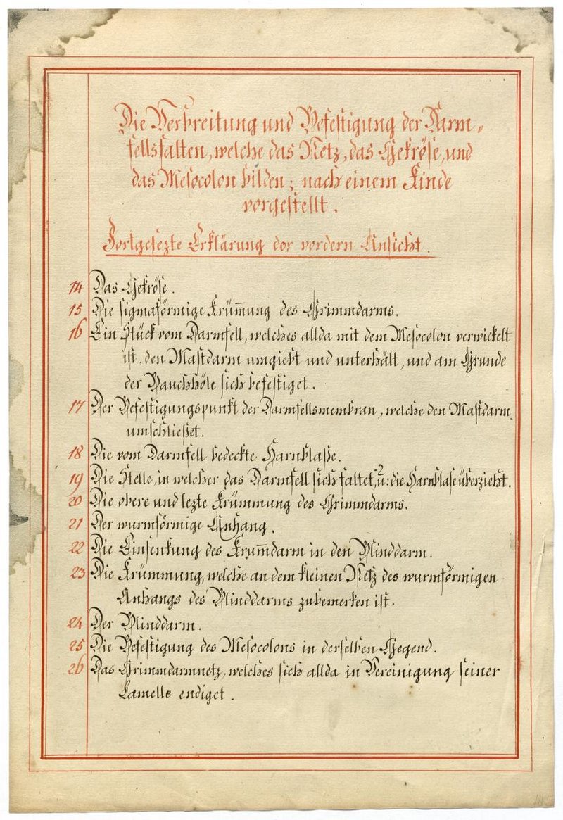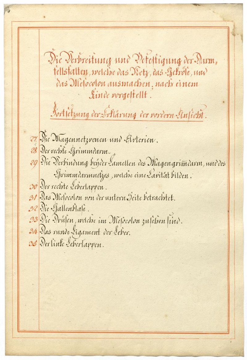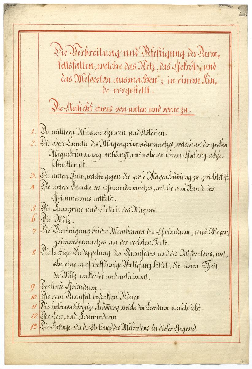 Der Text ist die ergänzende Beschreibung in deutscher Sprache zum anatomischen Wachsmodell der Gefäße des Bauchraums.