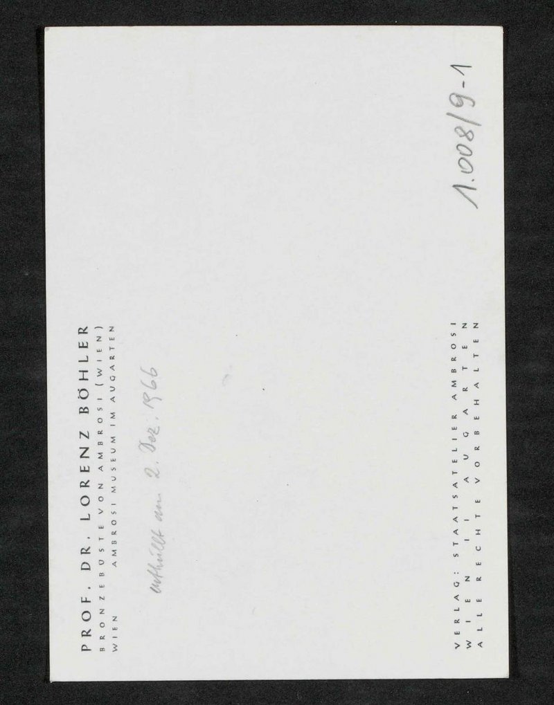 Die Büste wurde von Gustinus Ambrosi angefertigt und am 2. Dezember 1966 im Ambrosi-Atelier im Wiener Augarten enthüllt. Das Bild wurde im Verlag Staatsatelier Ambrosi, Wien, verlegt.