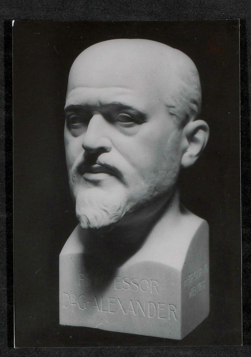 Zur Zeit der Anfertigung der fotografischen Vorlage war die Büste in Besitz der HNO-Ambulanz der Poliklinik, Wien. Der Name der Künstler:in, die die Büste 1933 angefertigt hat, ist unleserlich.