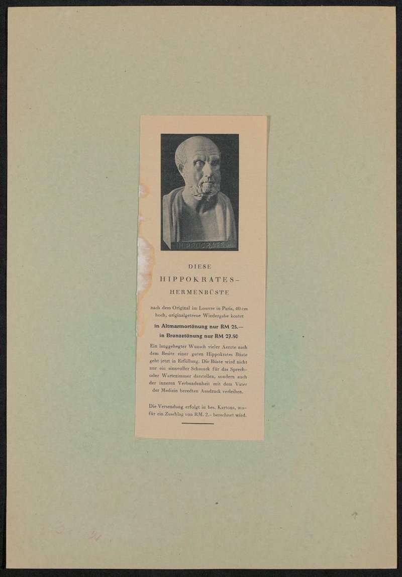 Ausschnitt aus einer Kaufanzeige für eine Hippokrates-Büste.
