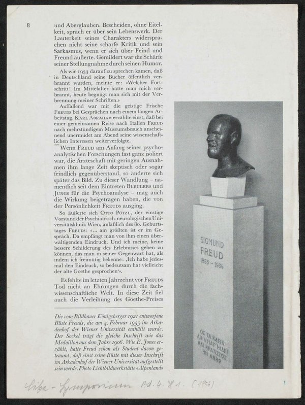 Die Büste ist von Paul Königsberger angefertigt und 1955 enthüllt worden. Fotografie in einem Artikel im Ciba-Symposium, Bd. 4, Heft 1, 1956.