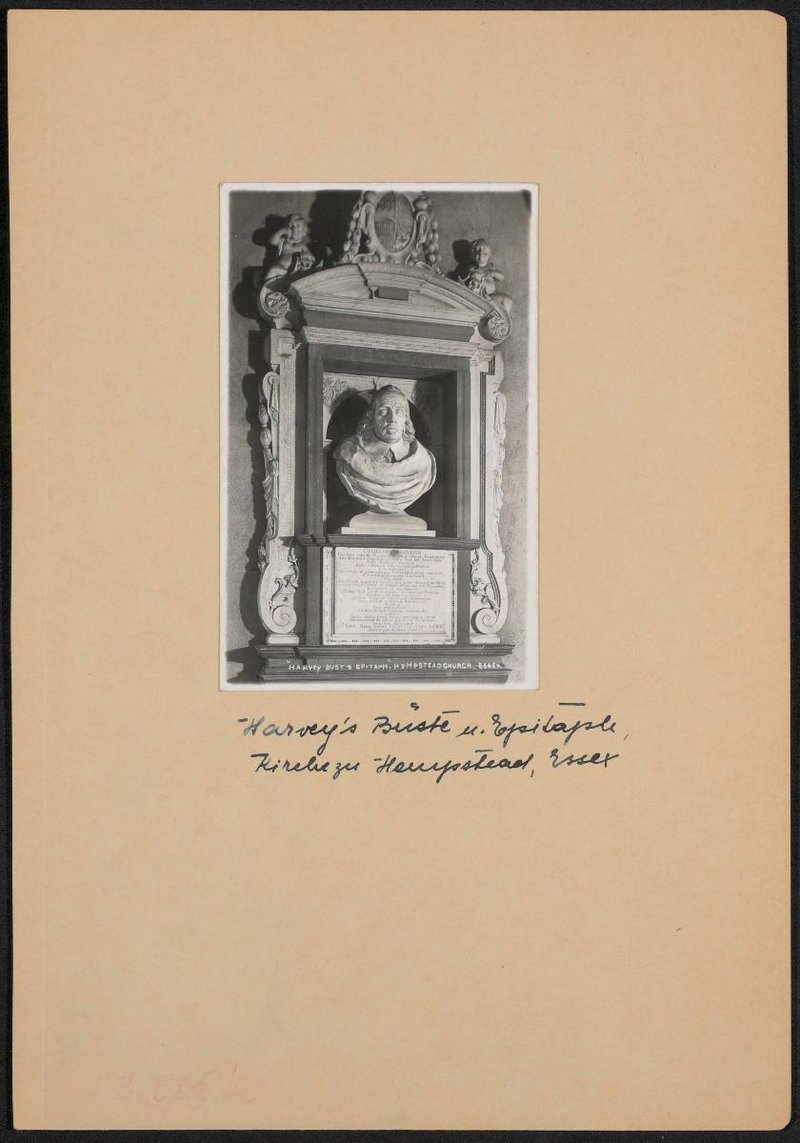 Laut Geoffrey Keynes, The Portraiture of William Harvey, London 1949, S. 35, handelt es sich um die Fotografie einer Büste in der Harvey Kapelle der Hempstead Kirche in Essex.