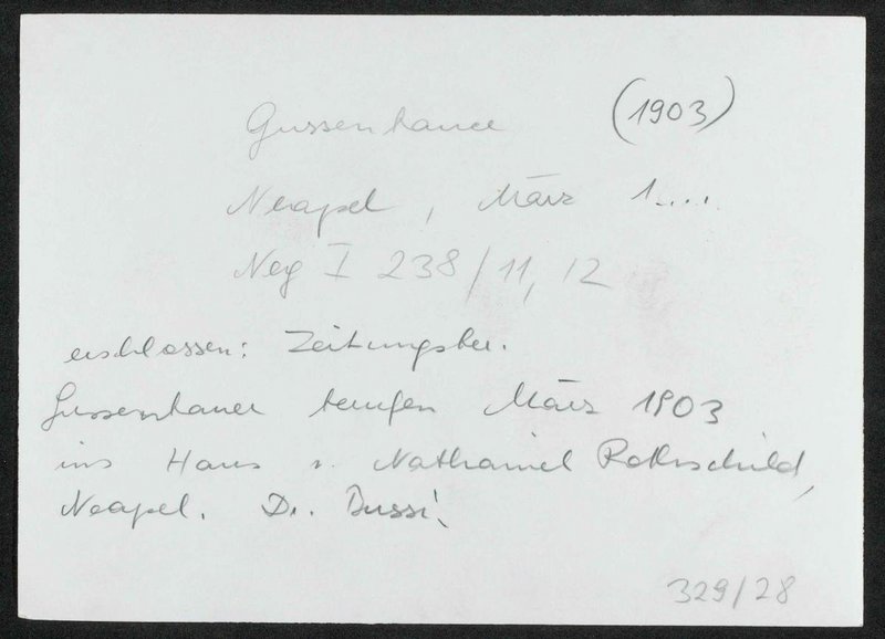 Die Fotografie wurde auf dem Dach des Hauses von Nathaniel Rothschild in Neapel von Dr. H. Prigl aufgenommen. Reproduktion einer Fotografie, die sich Zeitpunkt ihrer Entstehung im Besitz von Harald Buzzi, dem Neffen von Carl Gussenbauer, befand. Neg. I 238/11, 12