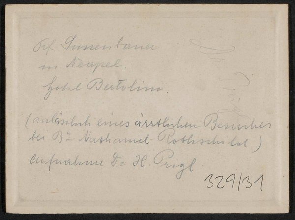 Die Fotografie wurde auf dem Dach des Hauses von Nathaniel Rothschild in Neapel von Dr. H. Prigl aufgenommen. Reproduktion einer Fotografie, die sich Zeitpunkt ihrer Entstehung im Besitz von Harald Buzzi, dem Neffen von Carl Gussenbauer, befand.