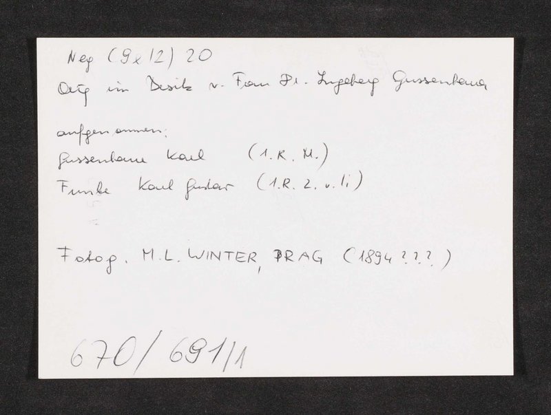 Reproduktion einer Fotografie von Moritz Ludwig Winter, Prag, aus der Zeit um 1880-1890. Die Vorlage befand sich zum Zeitpunkt der Entstehung der Kopie im Besitz von Ingeborg Gussenbauer.