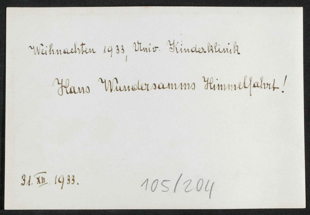 Mit dem rückseitigen Zusatz: Hans Wundersamms Himmelfahrt!