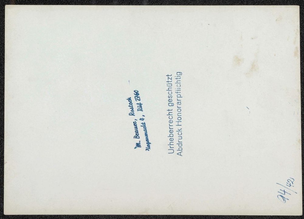 Fotografie: Margarete Brauer, Rostock. Neg I 228/37, 38