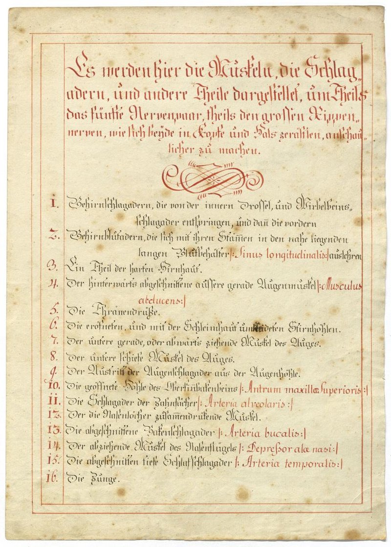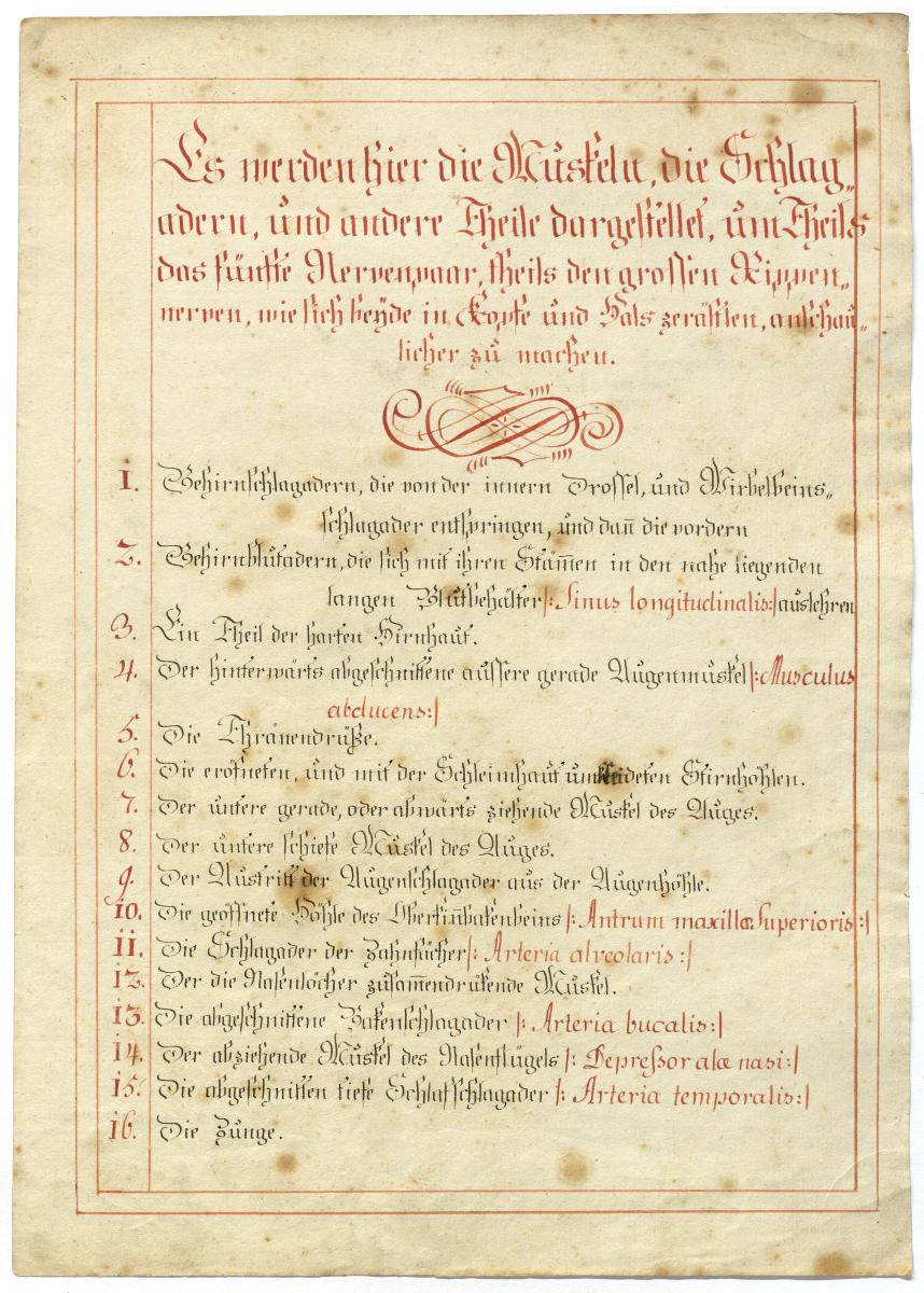 Der Text ist die ergänzende Beschreibung in deutscher Sprache zum anatomischen Wachsmodell der Leitungsbahnen der Kopf-Hals-Region. Blatt 2-4 fehlen.