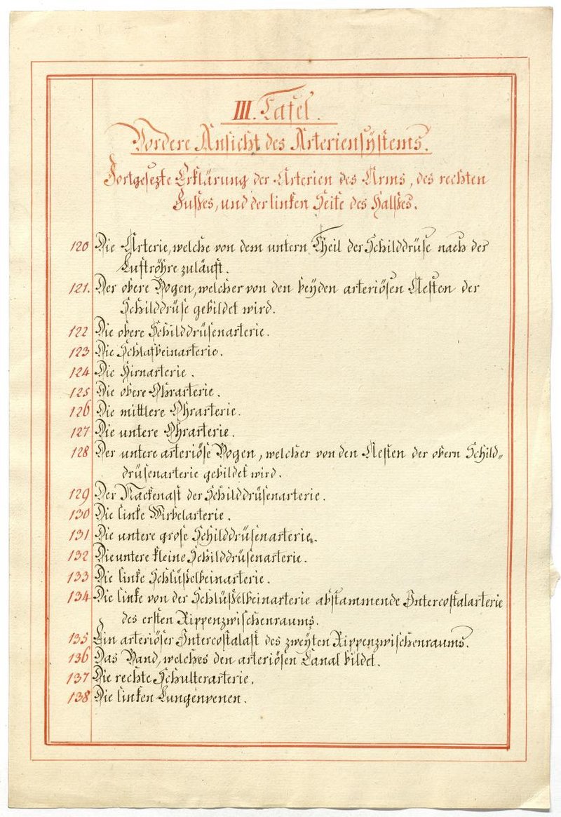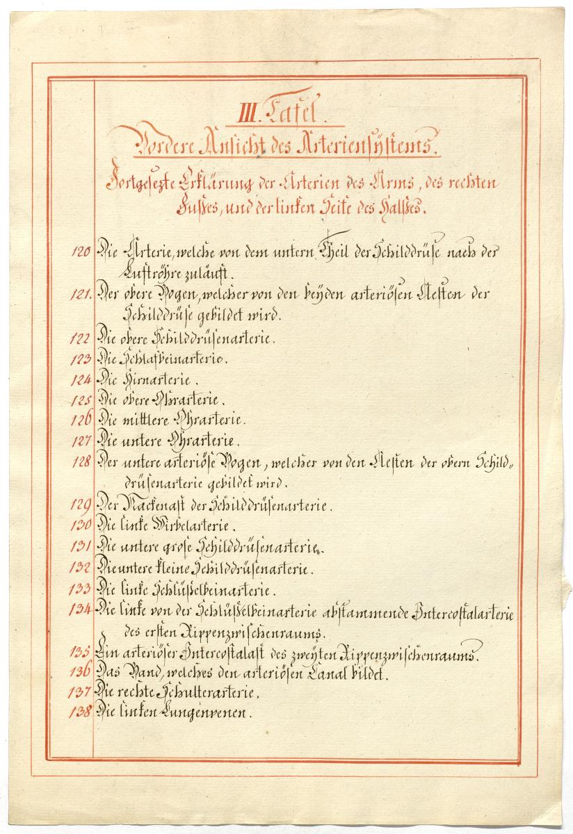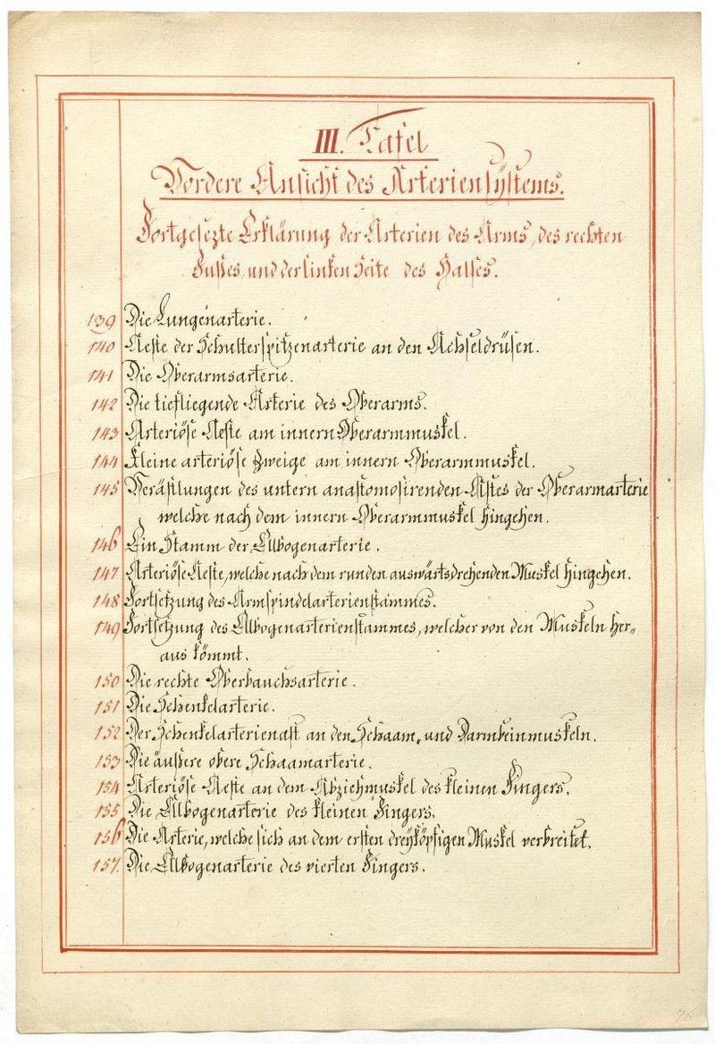 Der Text ist die ergänzende Beschreibung in deutscher Sprache zum anatomischen Wachsmodell des Arteriensystems.