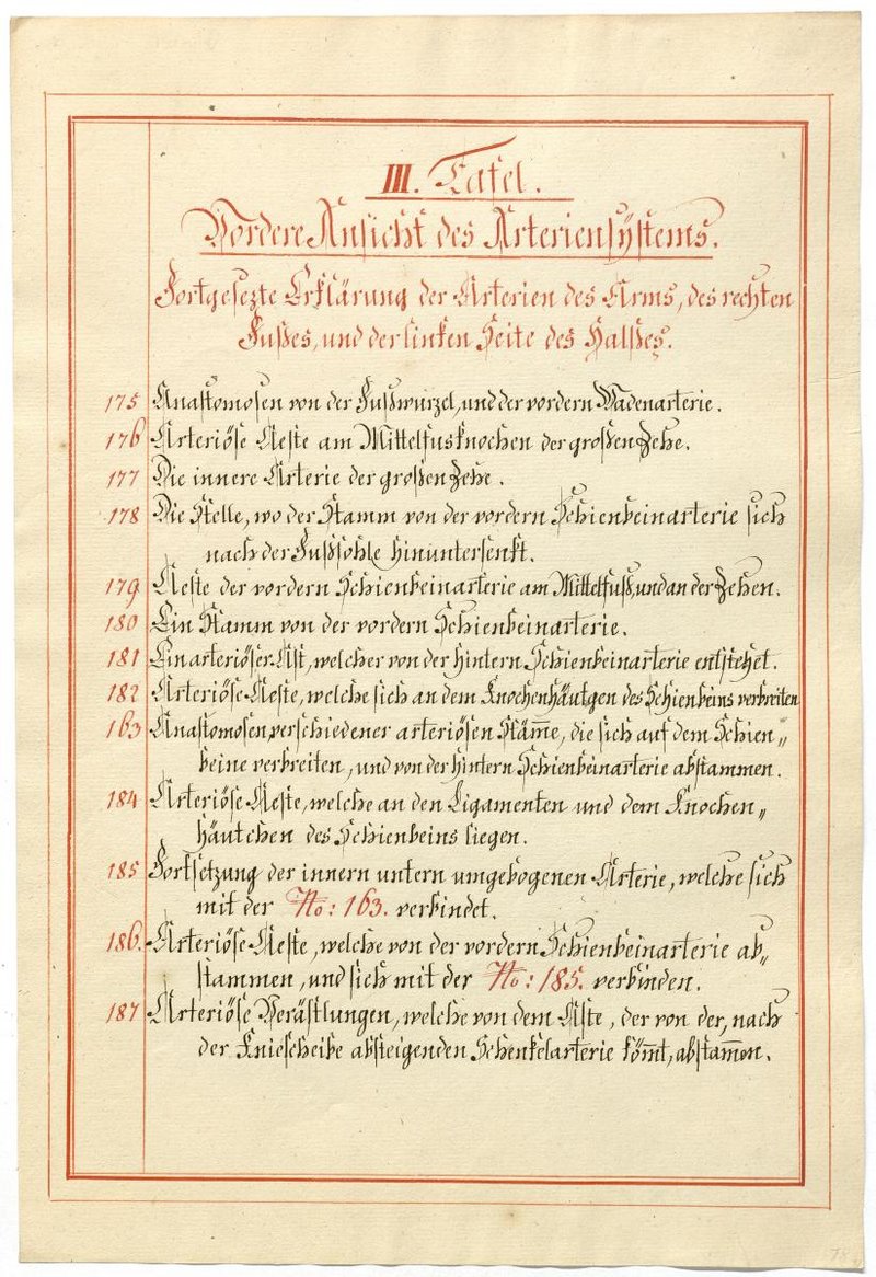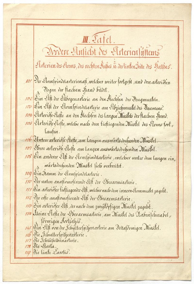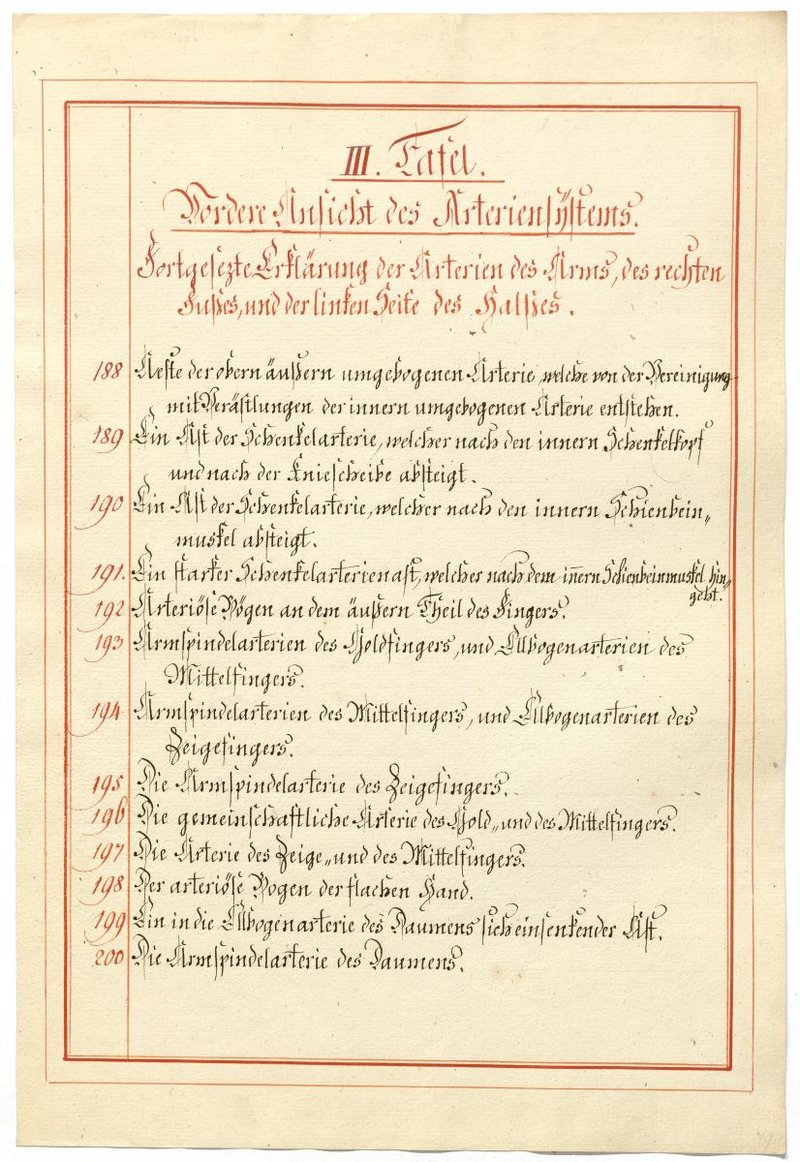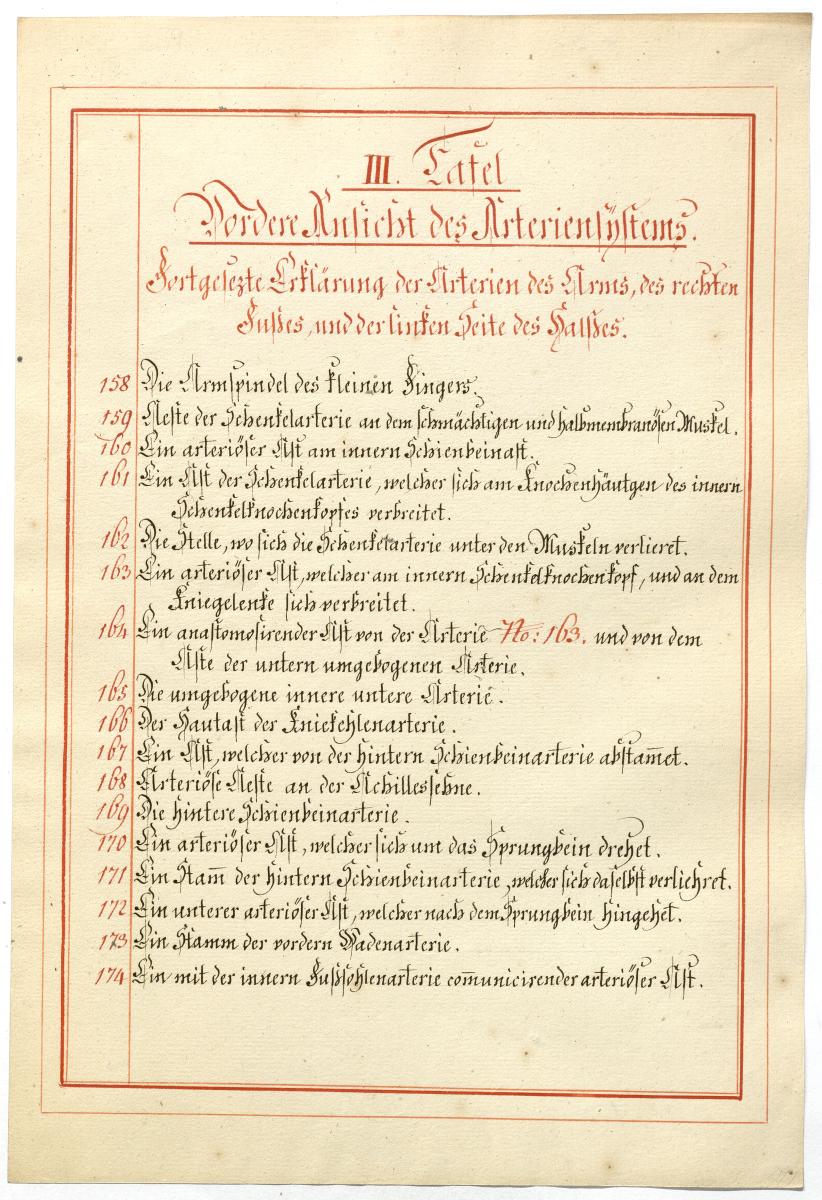 Der Text ist die ergänzende Beschreibung in deutscher Sprache zum anatomischen Wachsmodell des Arteriensystems.