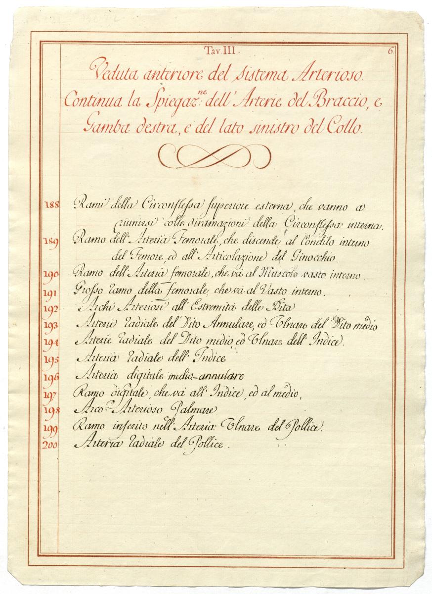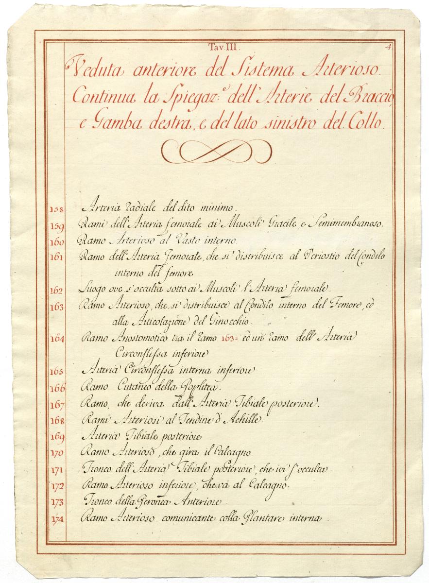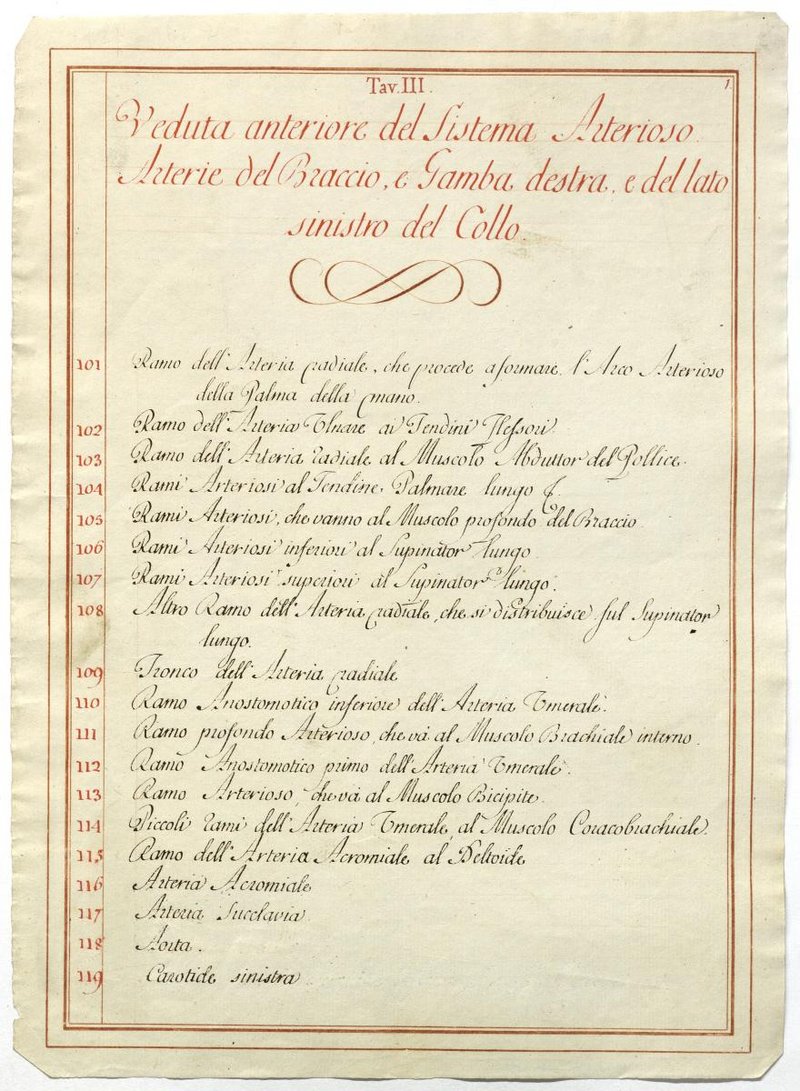 Der Text ist die ergänzende Beschreibung in italienischer Sprache zum anatomischen Wachsmodell des Arteriensystems.
