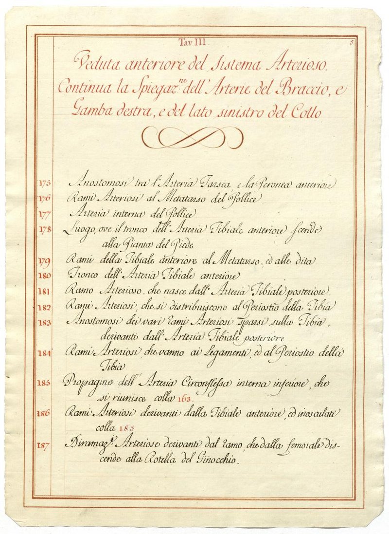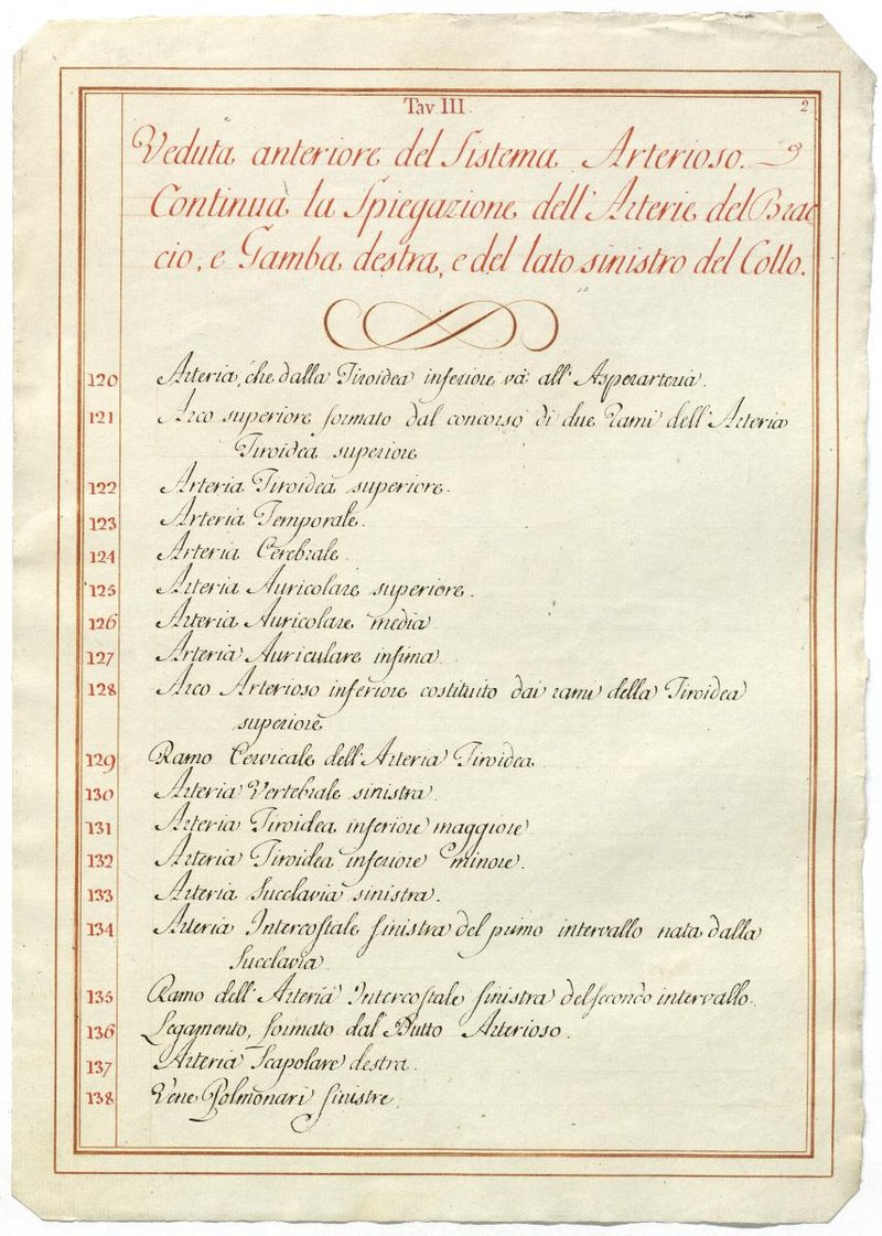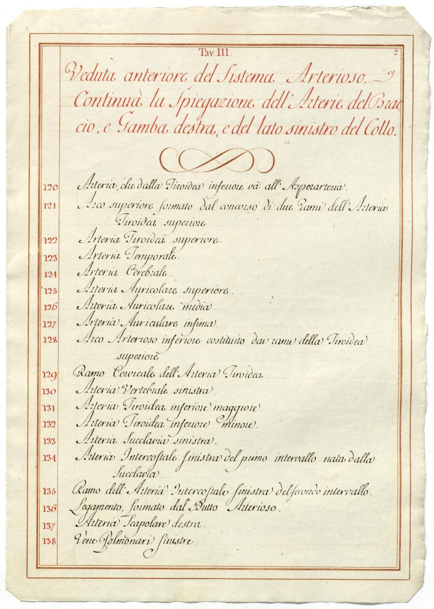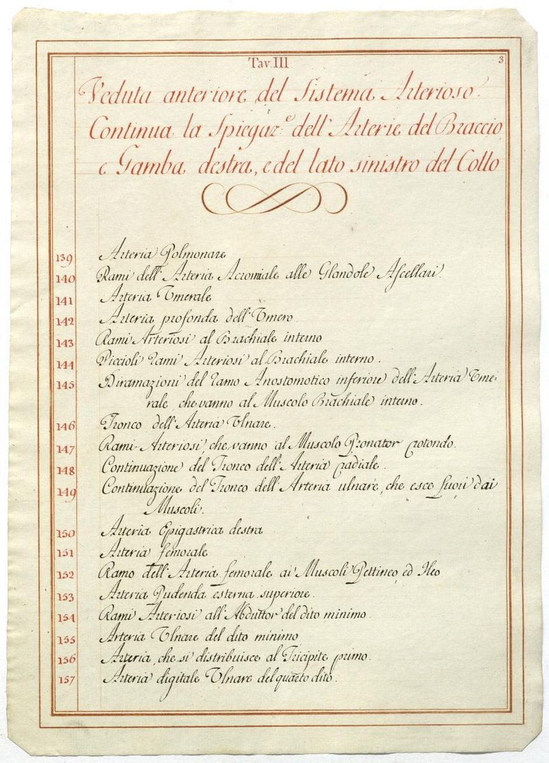 Der Text ist die ergänzende Beschreibung in italienischer Sprache zum anatomischen Wachsmodell des Arteriensystems.