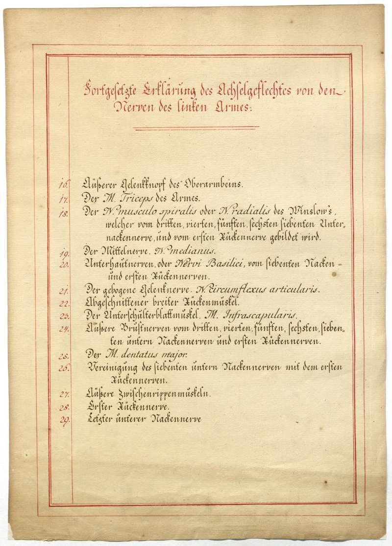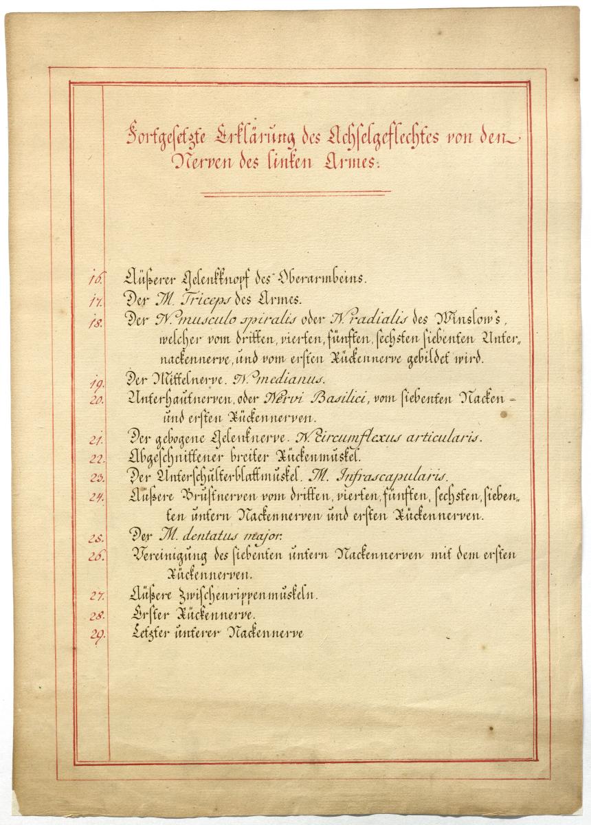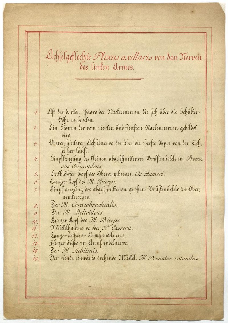 Der Text ist die ergänzende Beschreibung in deutscher Sprache zum anatomischen Wachsmodell des Plexus brachialis.