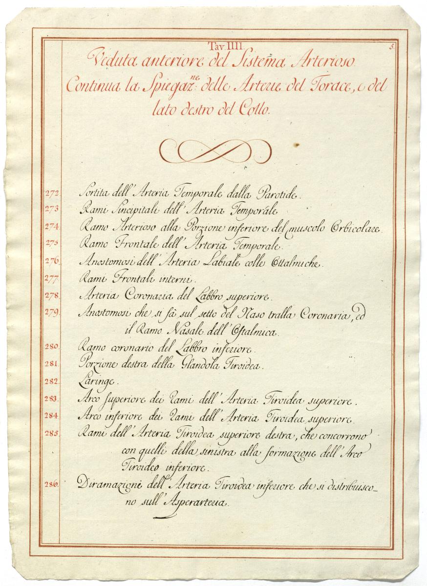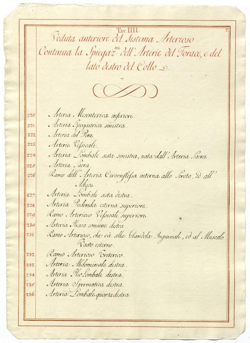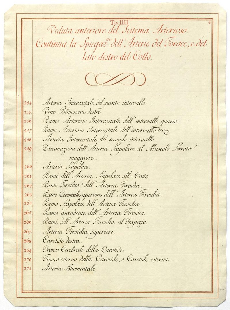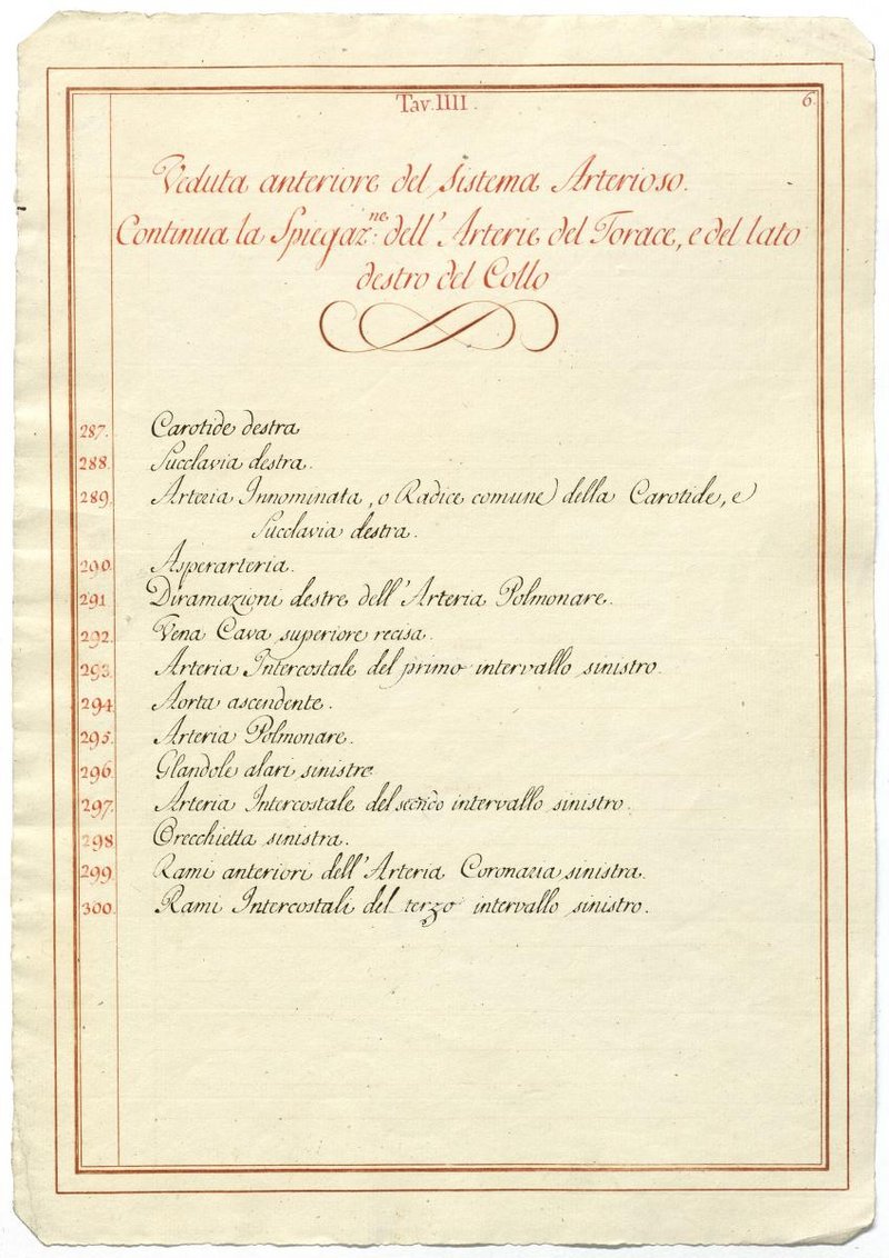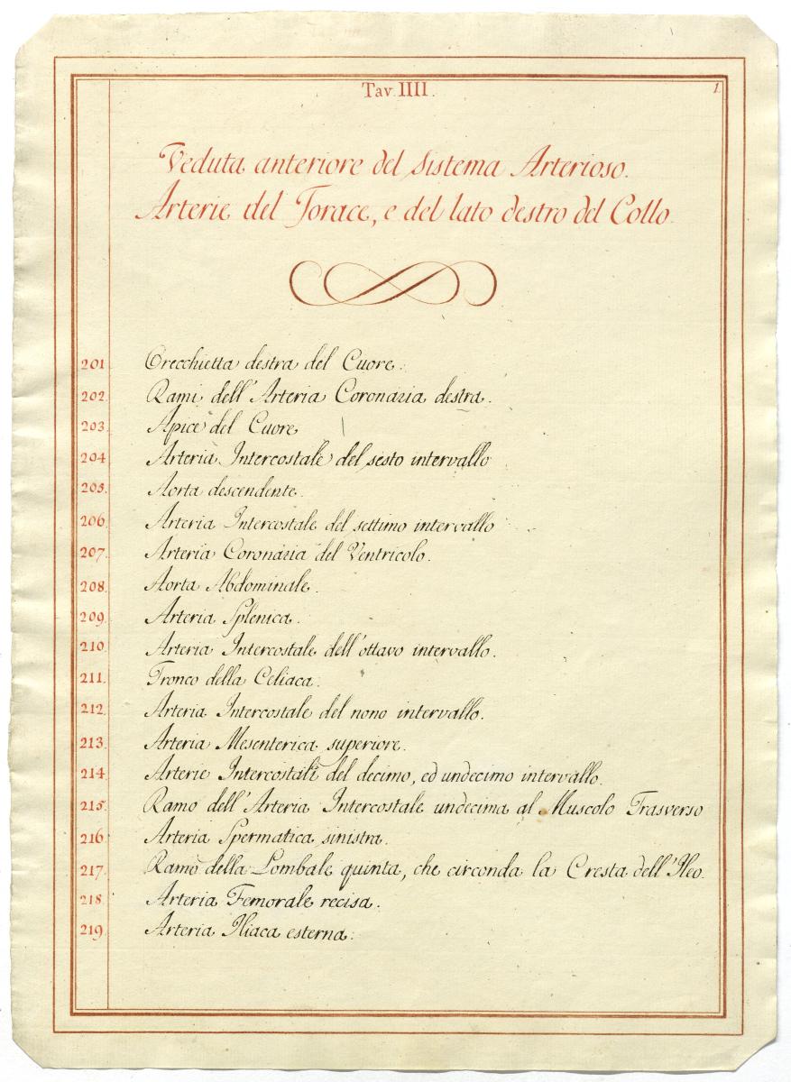 Der Text ist die ergänzende Beschreibung in italienischer Sprache zum anatomischen Wachsmodell des Arteriensystems.