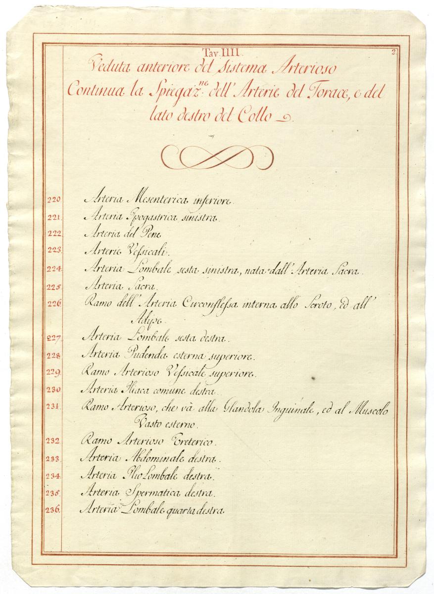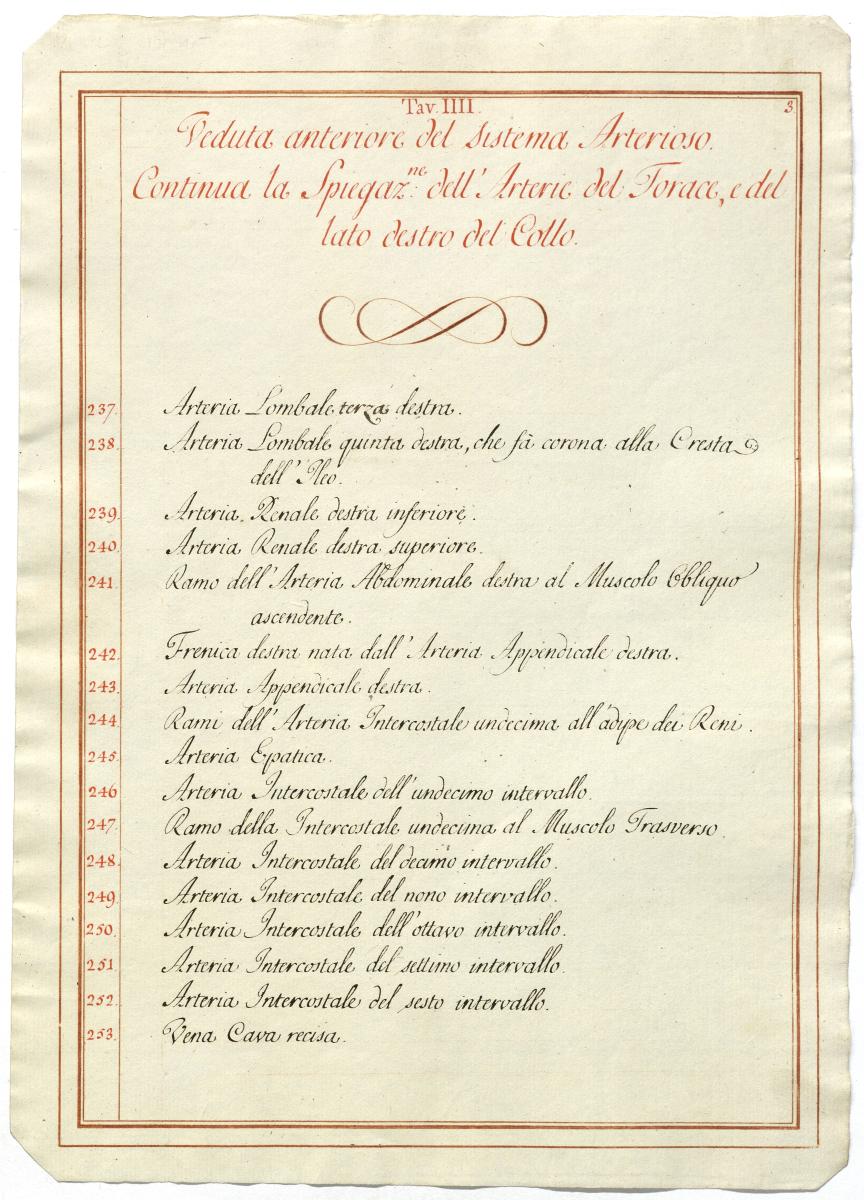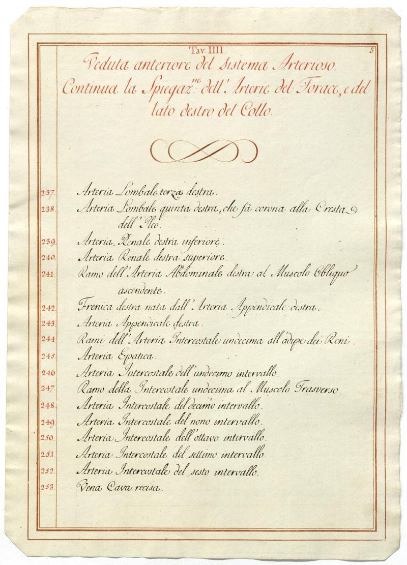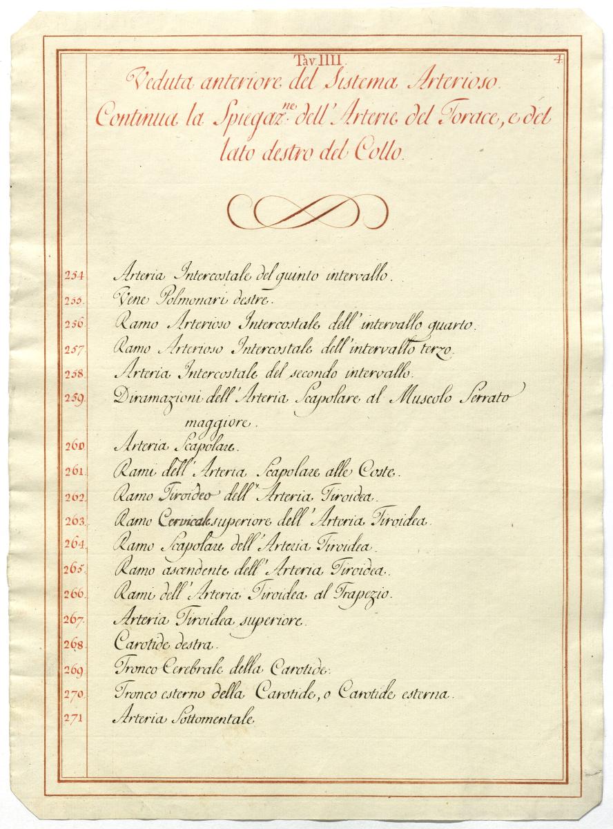 Der Text ist die ergänzende Beschreibung in italienischer Sprache zum anatomischen Wachsmodell des Arteriensystems.